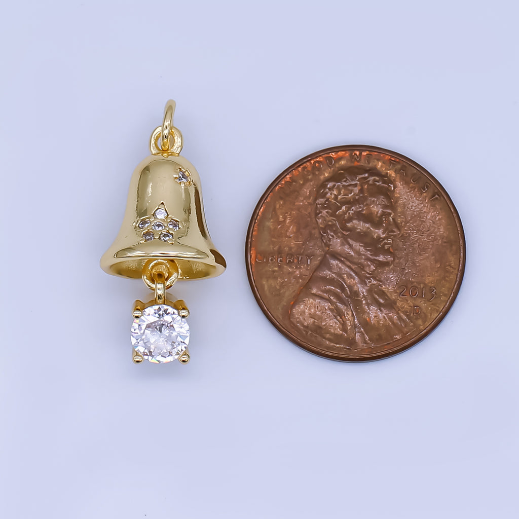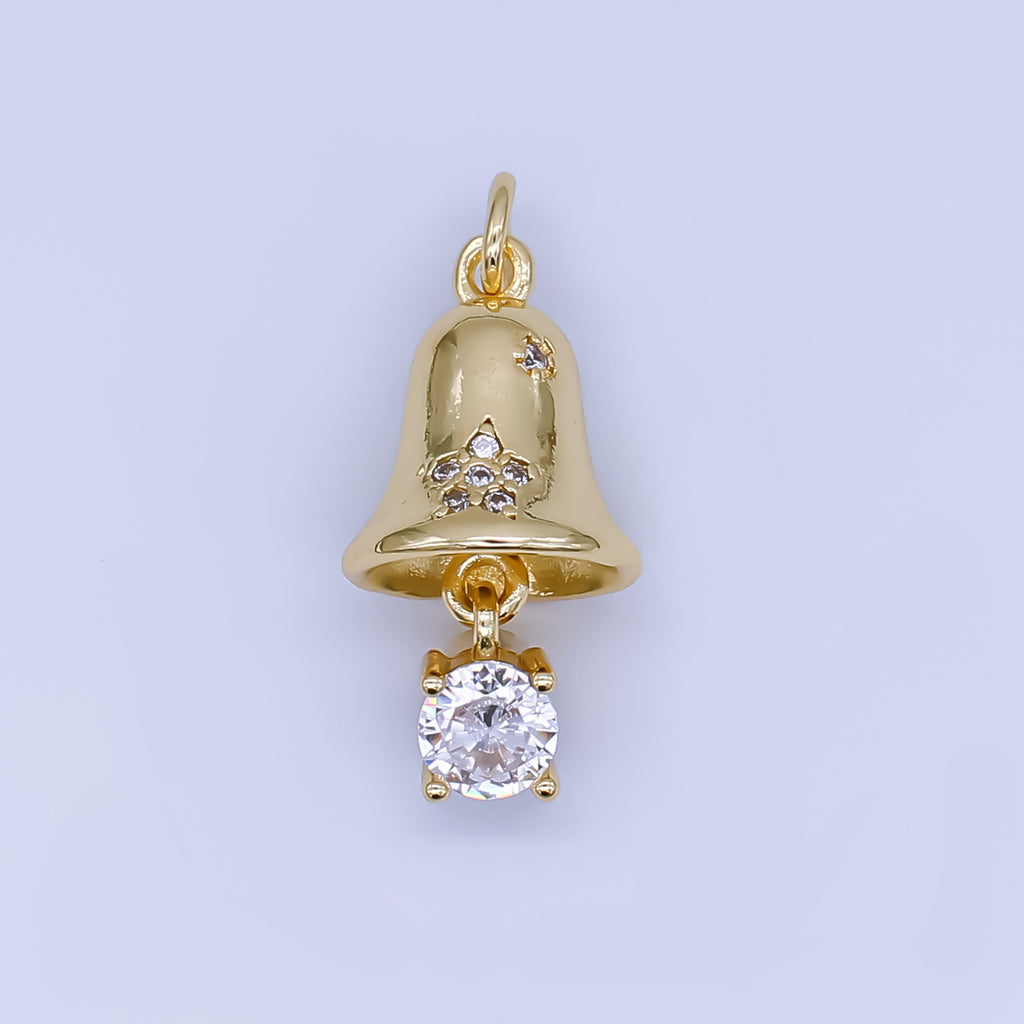 24k Gold Filled Bell with Solitaire CZ Ball Drop Charm | AF1504
