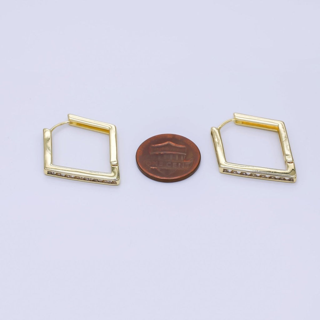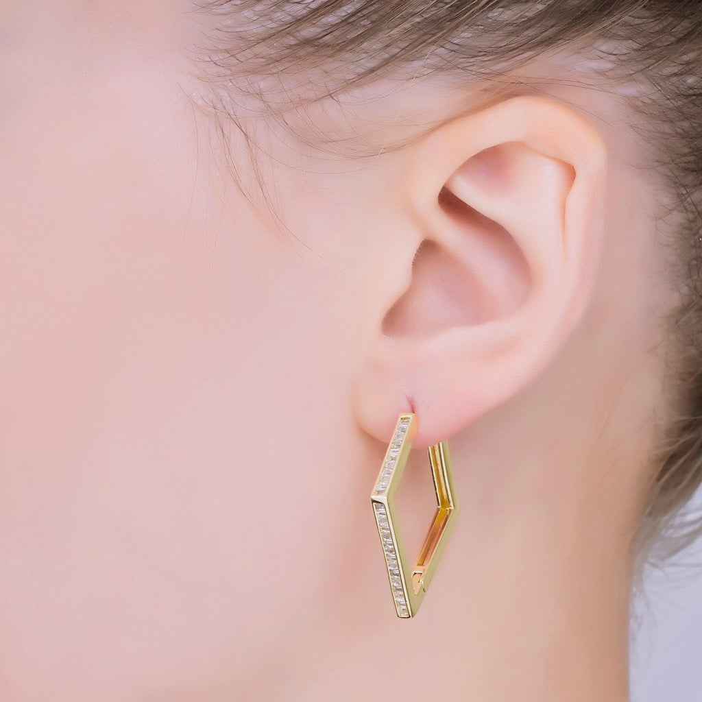 24K Gold Filled Clear CZ Diamond-Shaped Lever Back Hoops Earrings | AJ-059