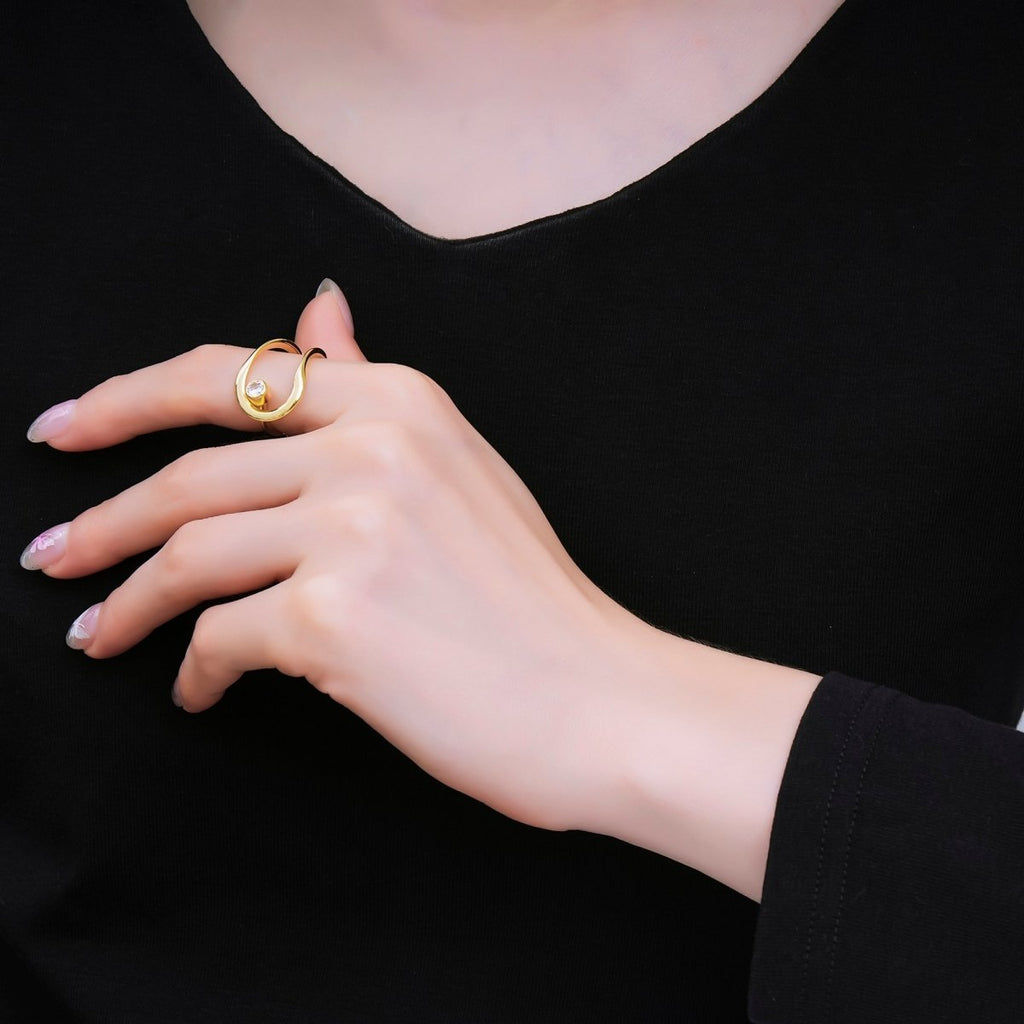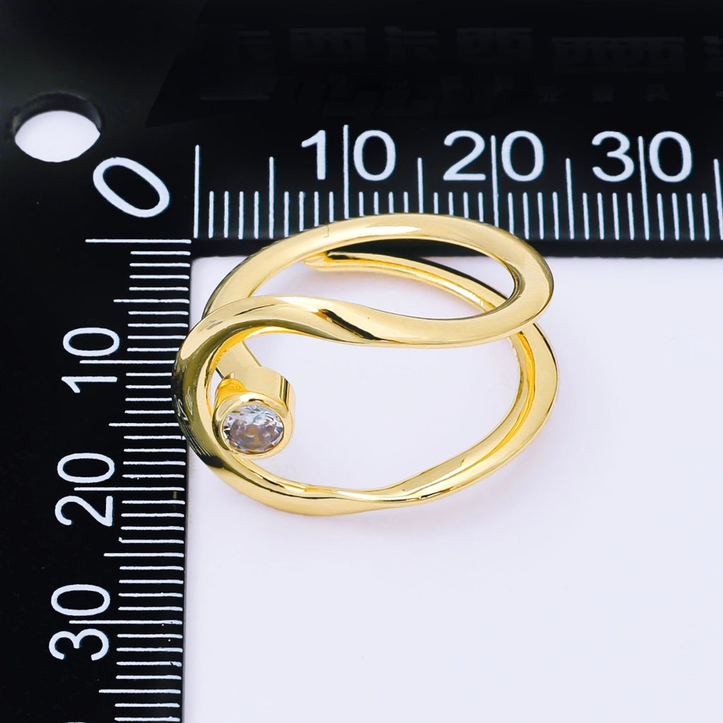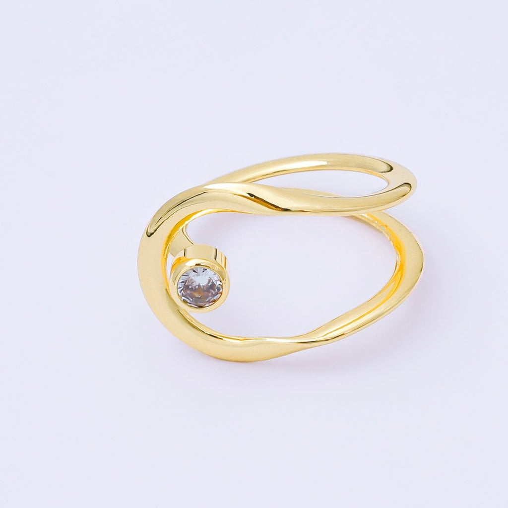 24K Gold Filled Clear CZ Geometric Molten Open Double Band Ring | O1988