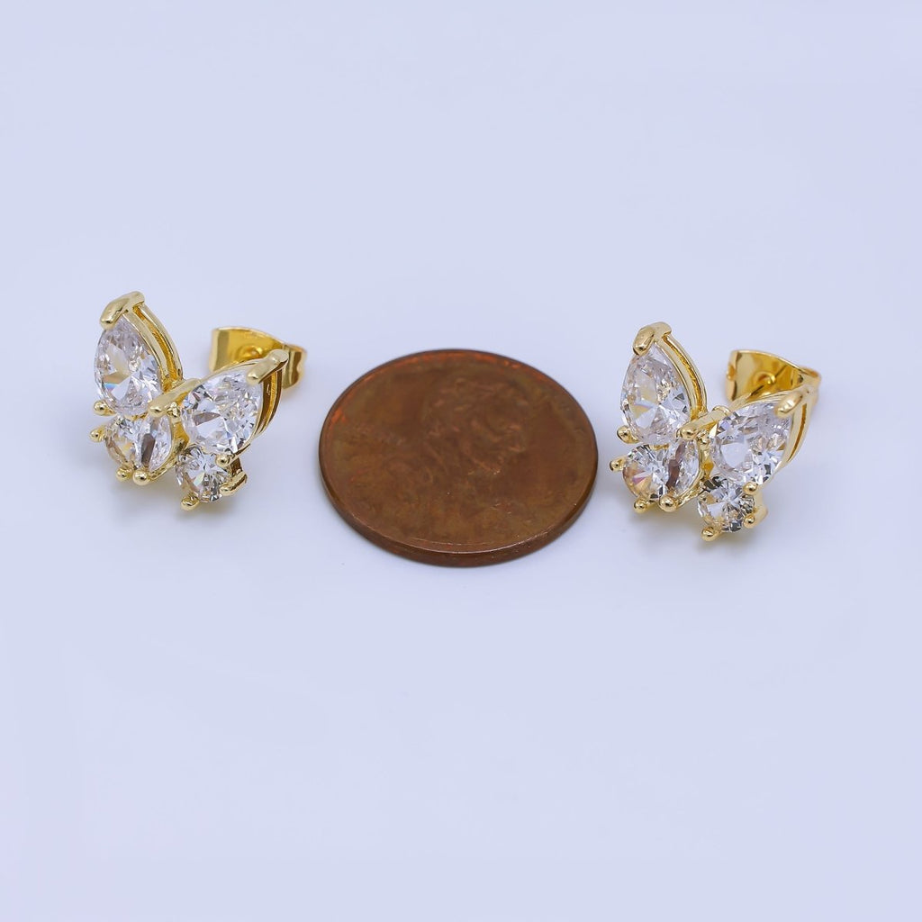 24K Gold Filled Clear Teardrop, Marquise & Round CZ Clear Butterfly Stud Earrings | AJ-043