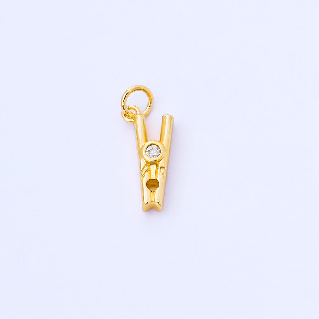 24k Gold Filled Clothespin with CZ Tiny Charm | AF1550