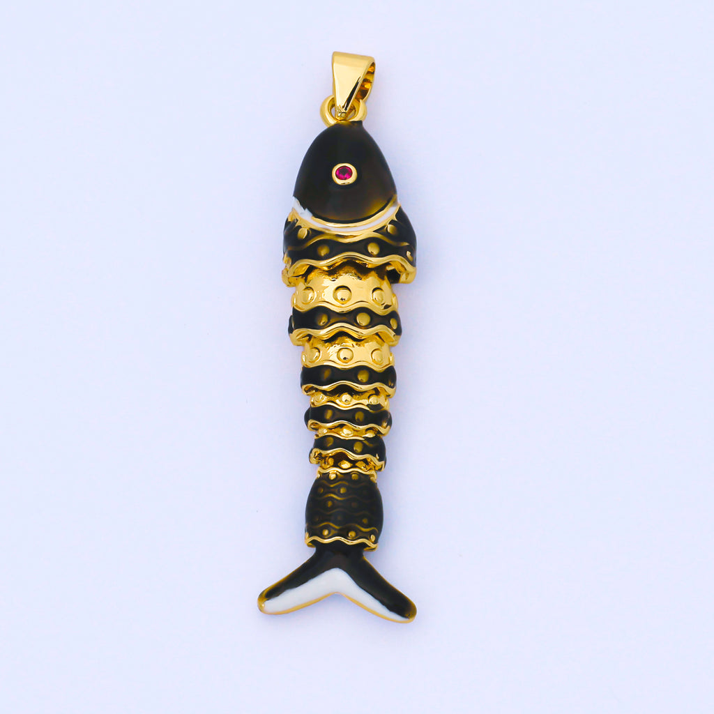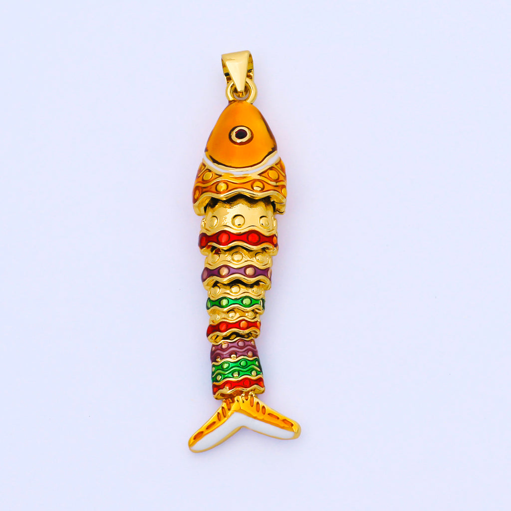24K Gold Filled Colorful Enamel Koi Fish 3D Articulated Fish Pendant Animal Charm | AA1669