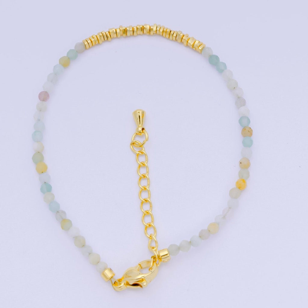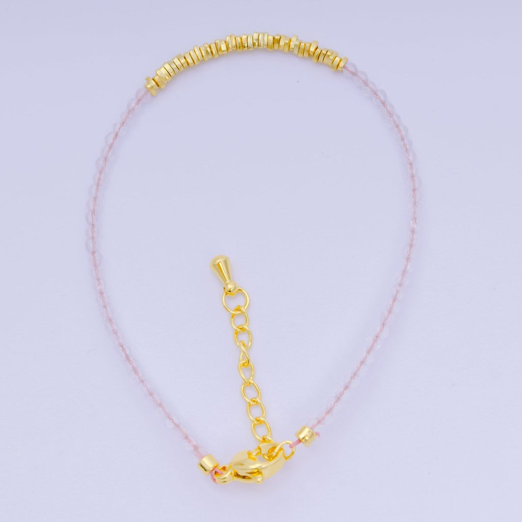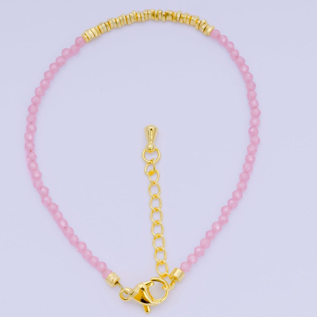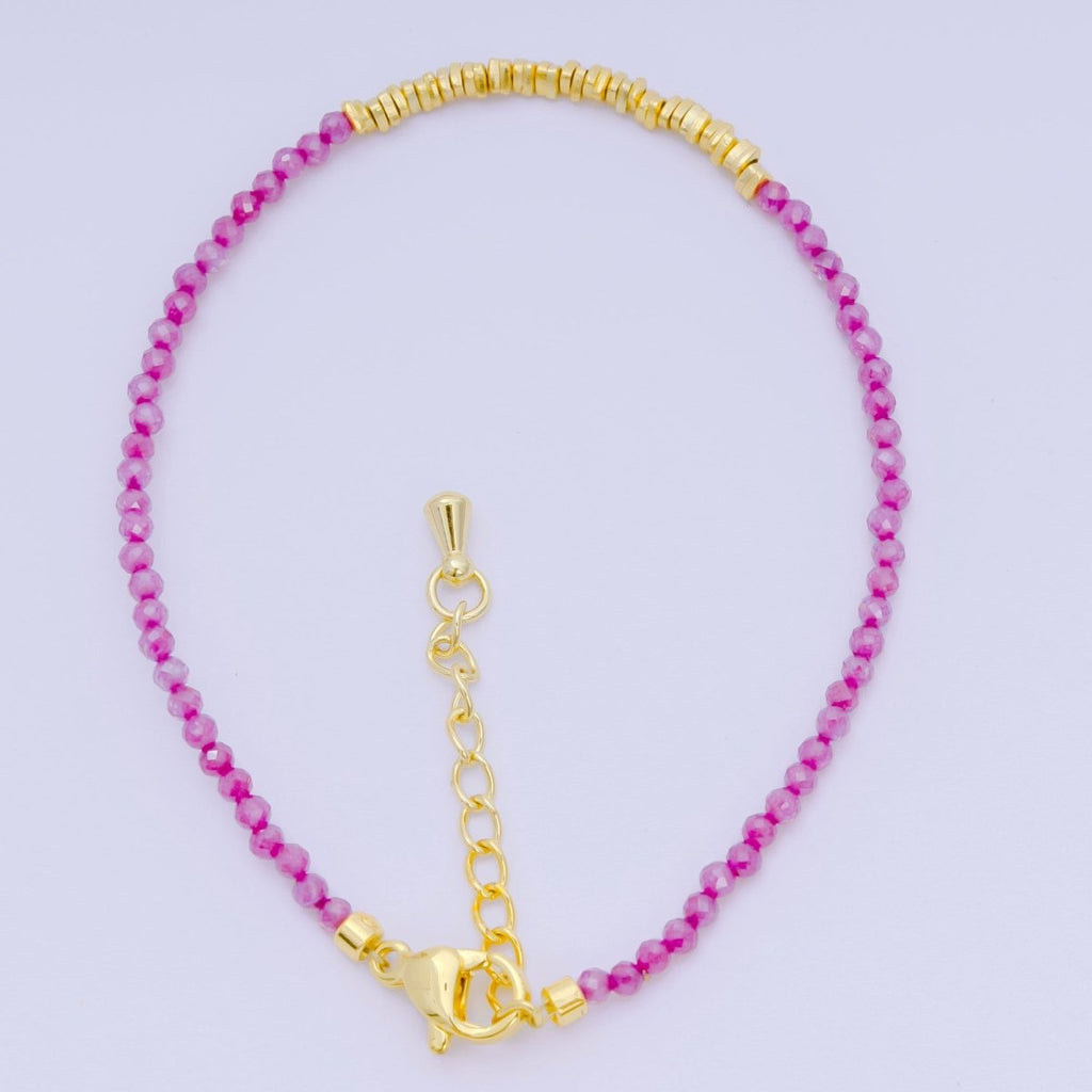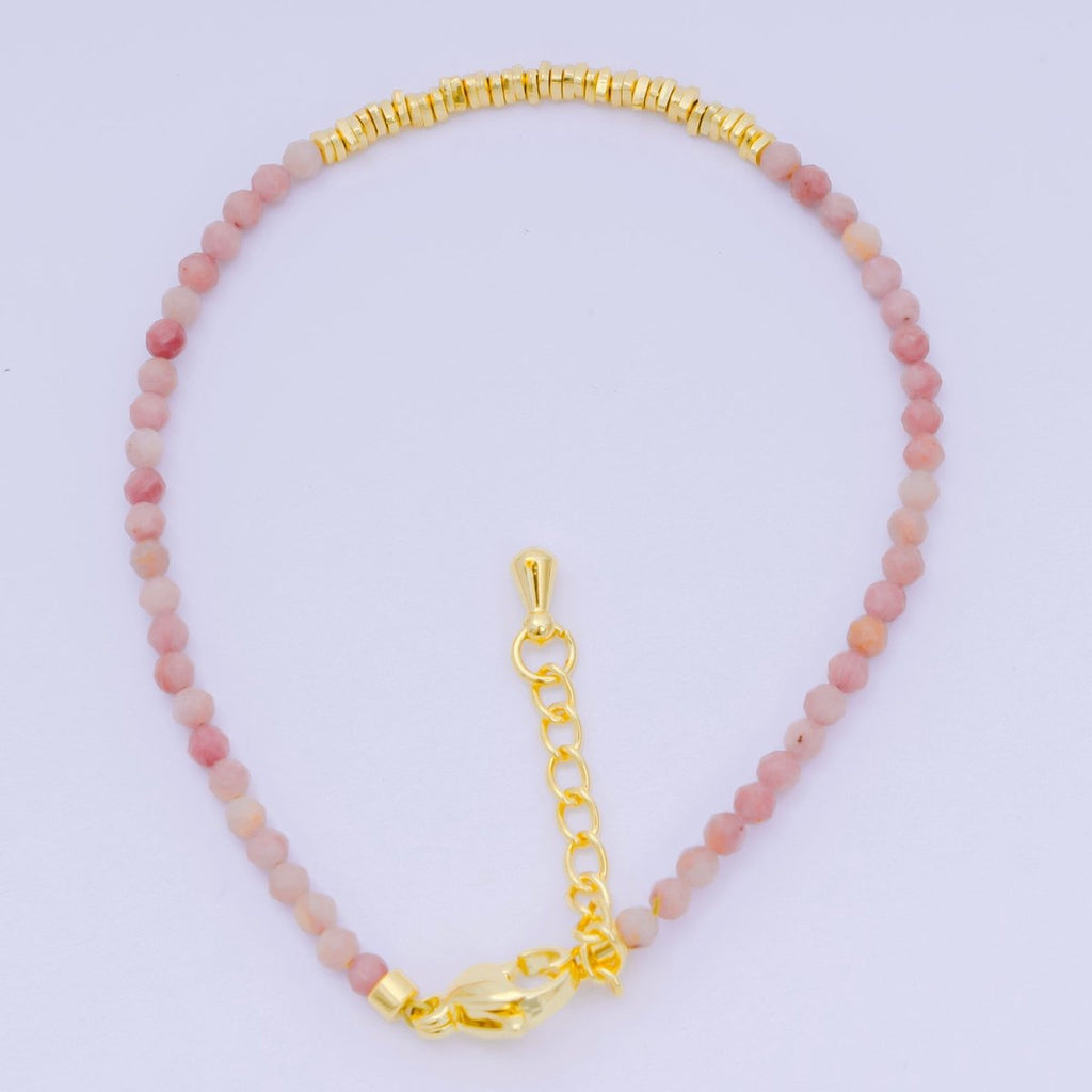 24K Gold Filled Colorful Gemstone Bead Bracelet in White, Fuchsia, & Pink | WA-3672 - WA-3694