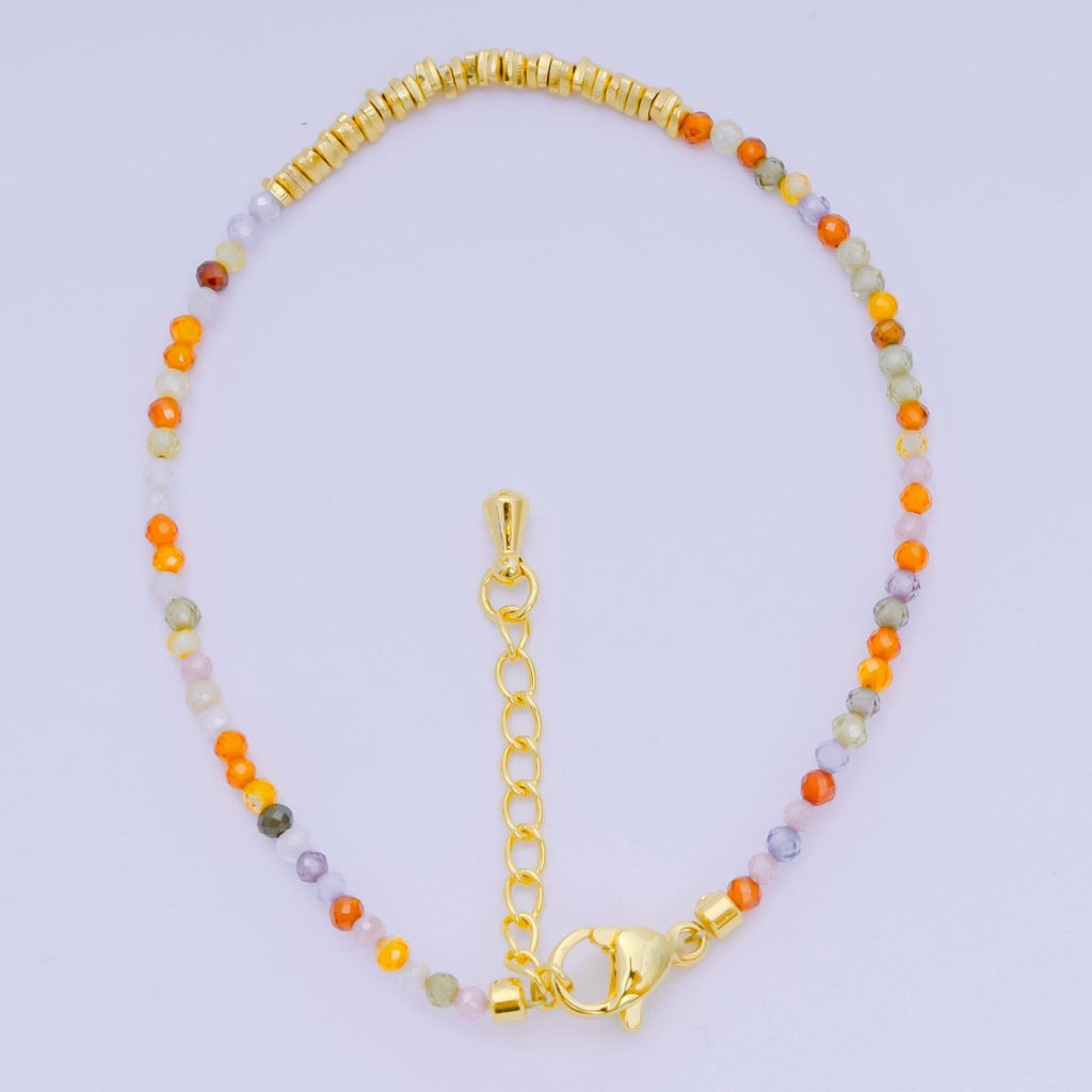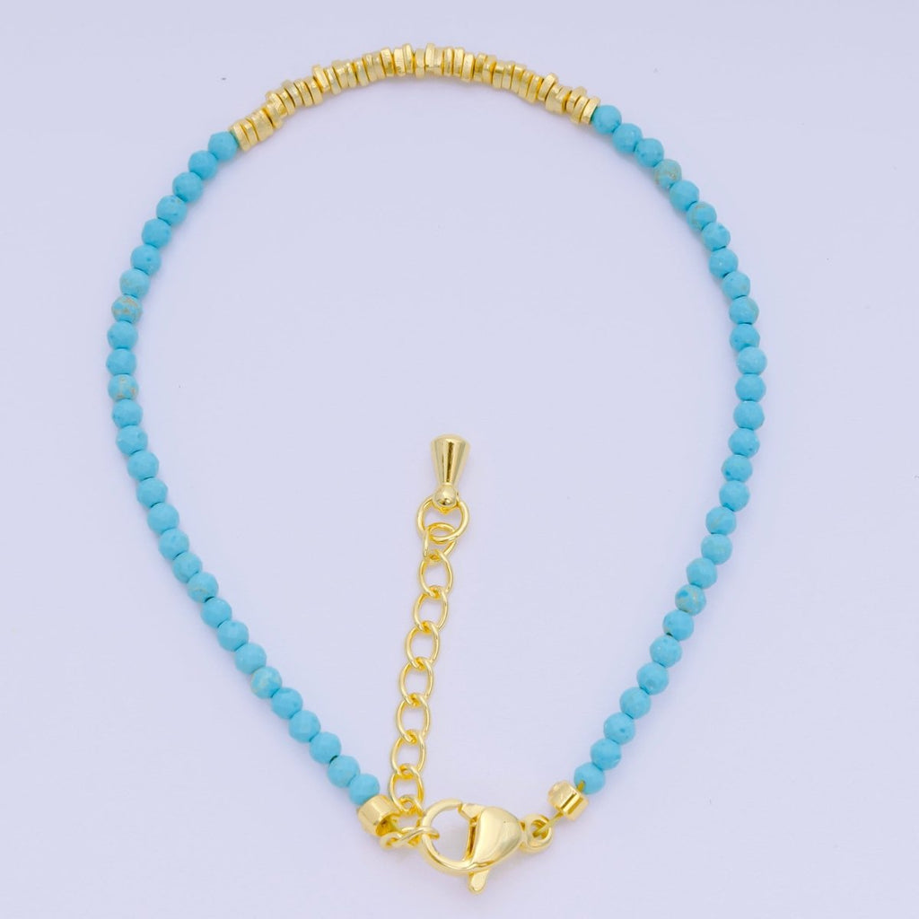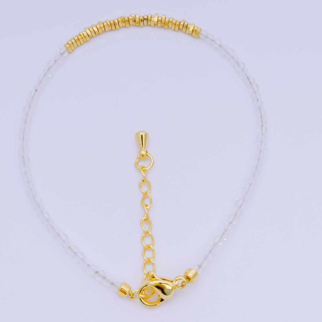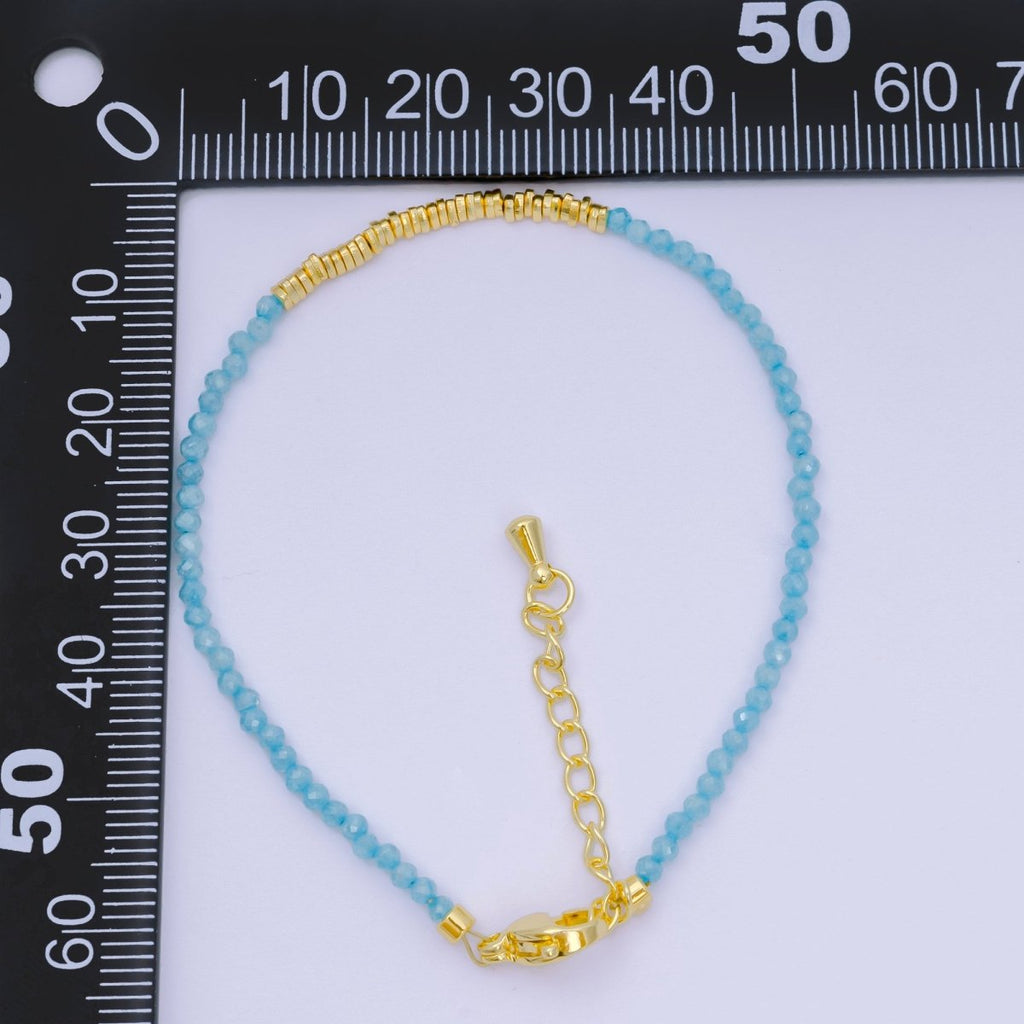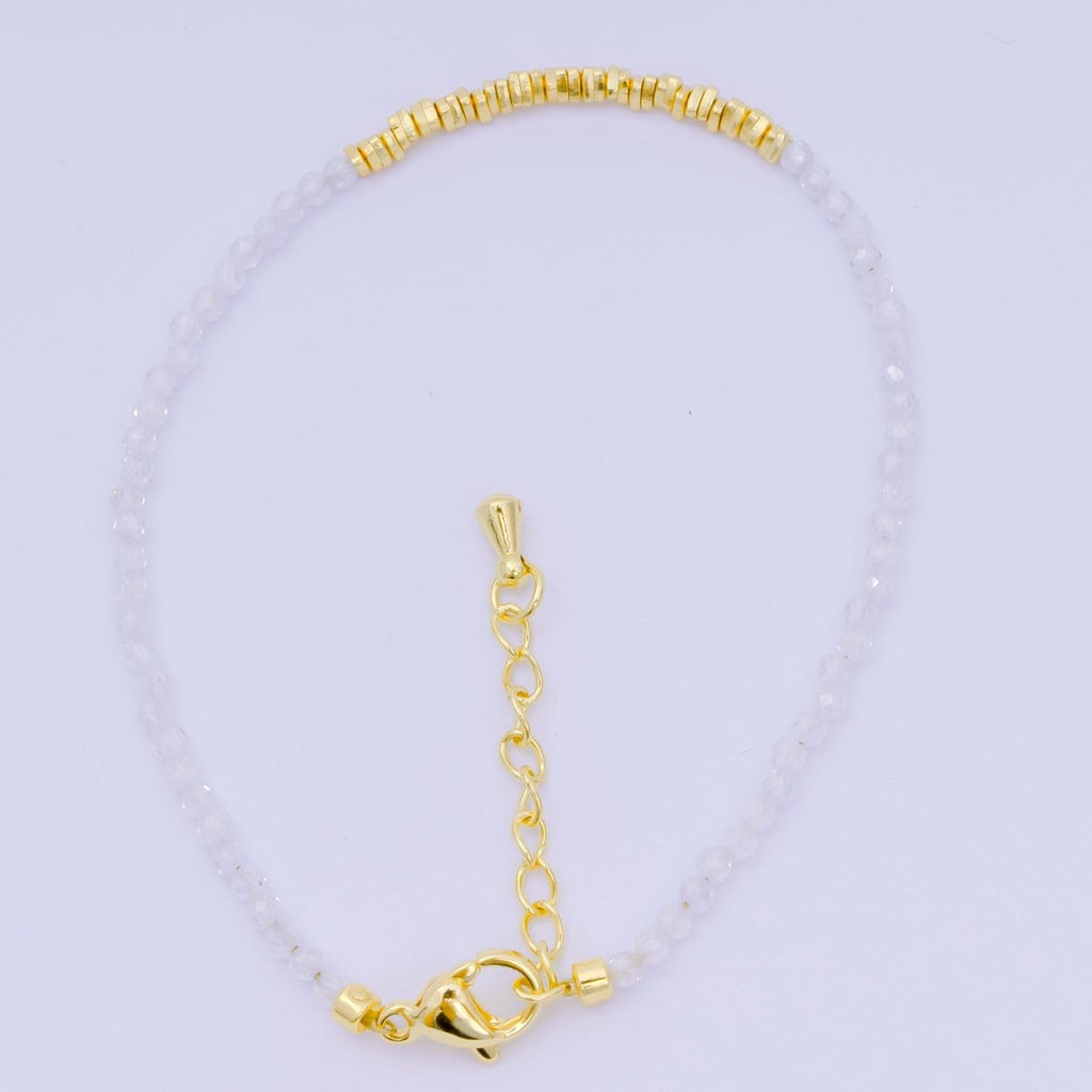 24K Gold Filled Colorful Gemstone Bead Bracelet in White, Fuchsia, & Pink | WA-3672 - WA-3694