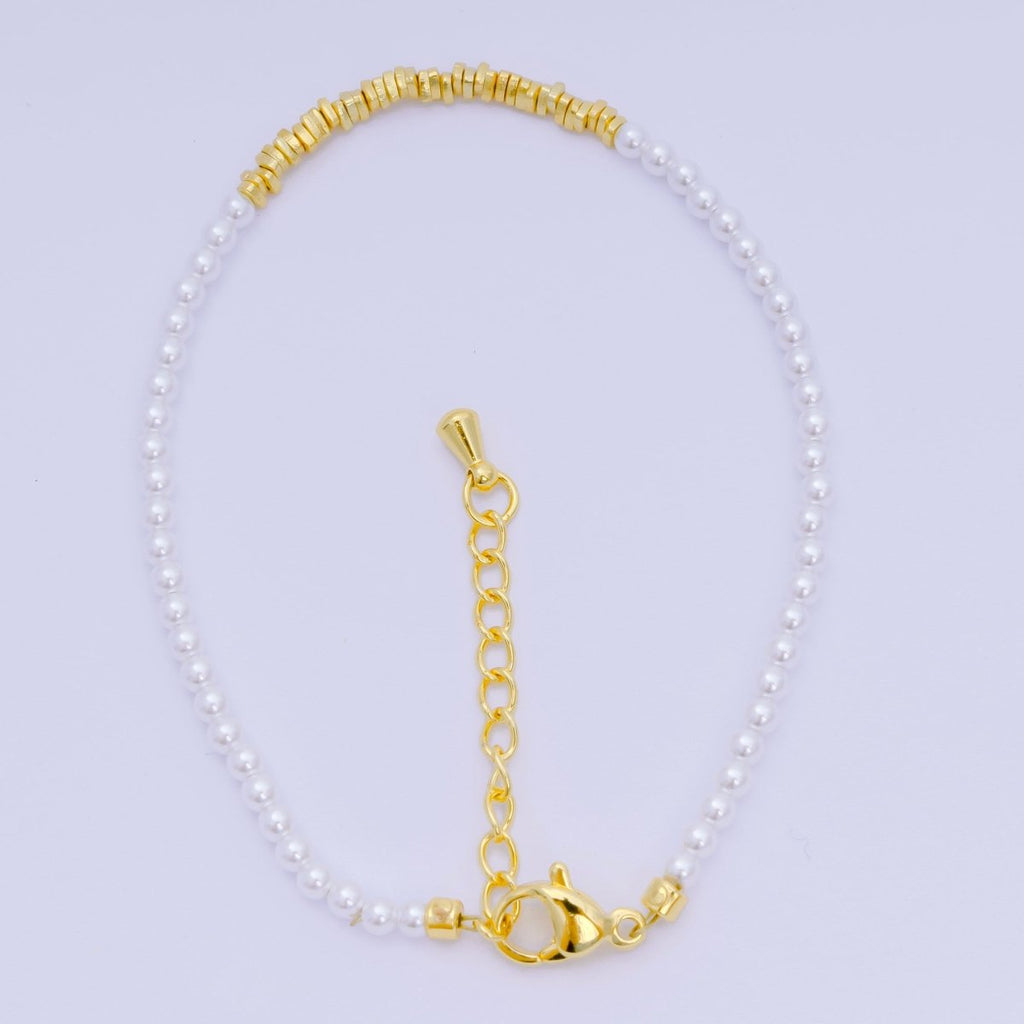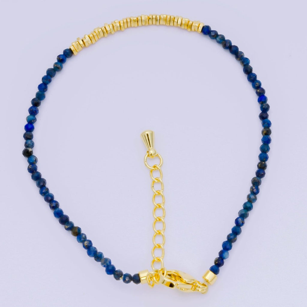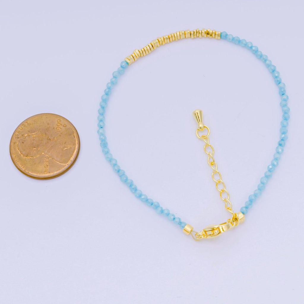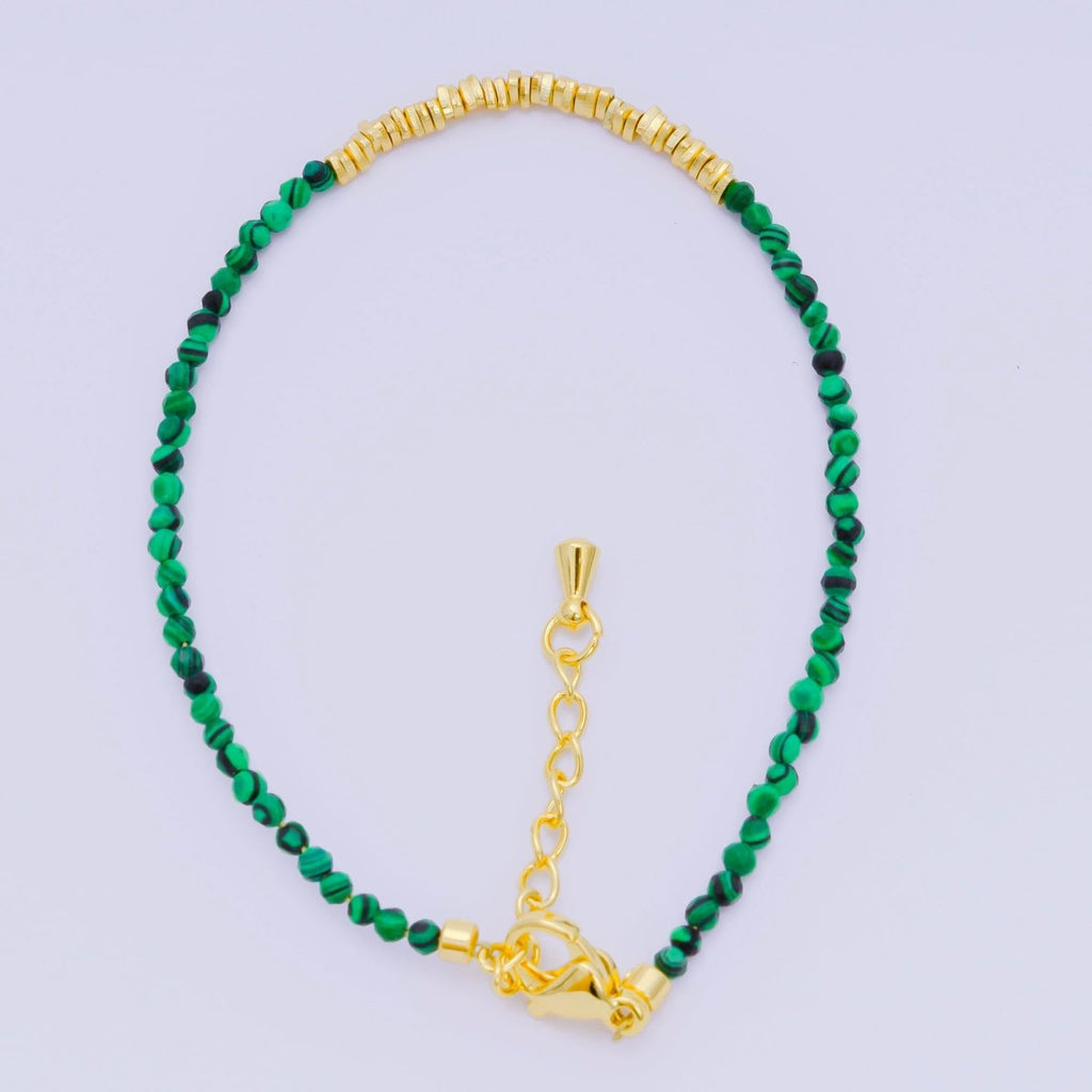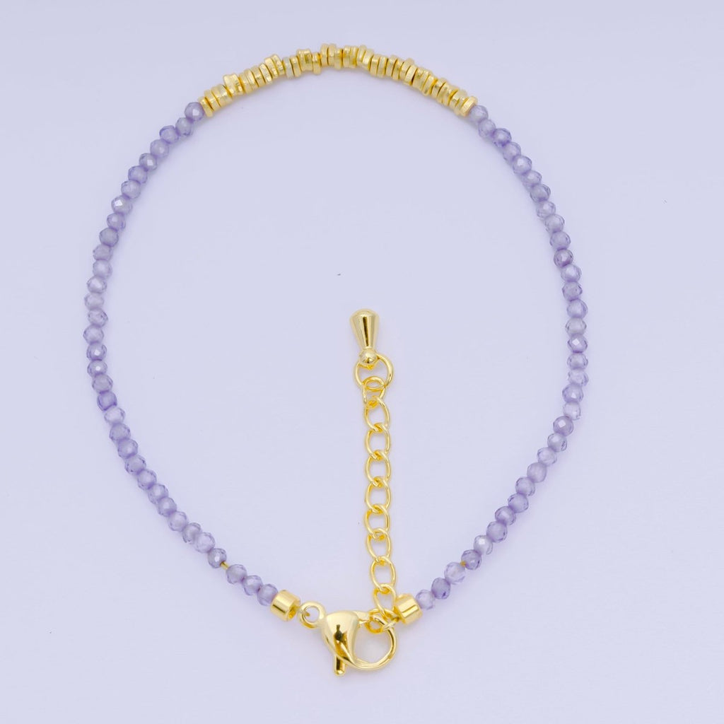 24K Gold Filled Colorful Gemstone Bead Bracelet in White, Fuchsia, & Pink | WA-3672 - WA-3694
