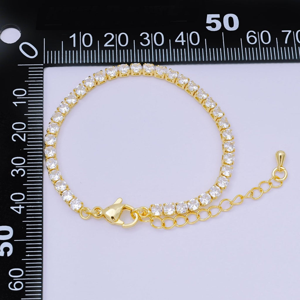 24K Gold Filled 3mm CZ Classic Tennis Bracelet 5.90 Inches with Extender | WA-3410