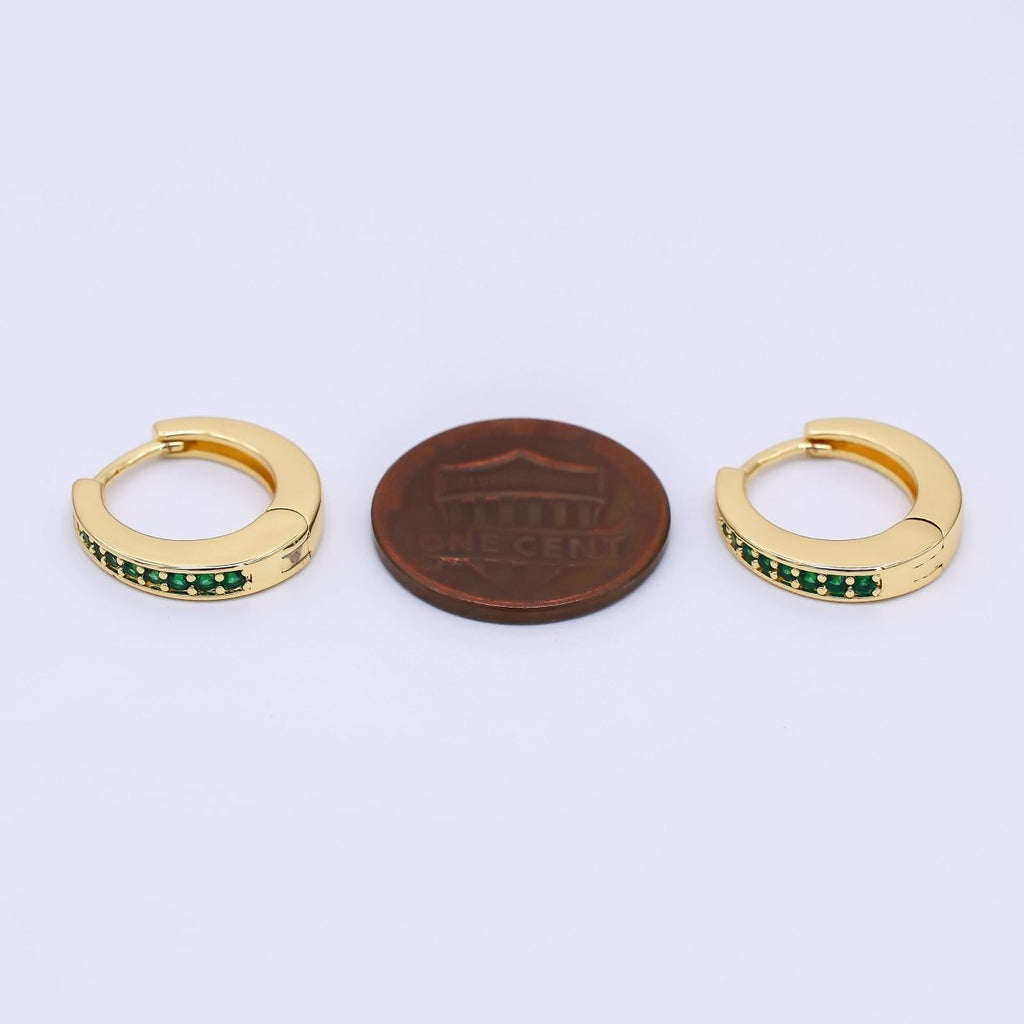 24K Gold Filled Emerald Green Micro Paved CZ Lever Back Hoops Earrings | AJ-053