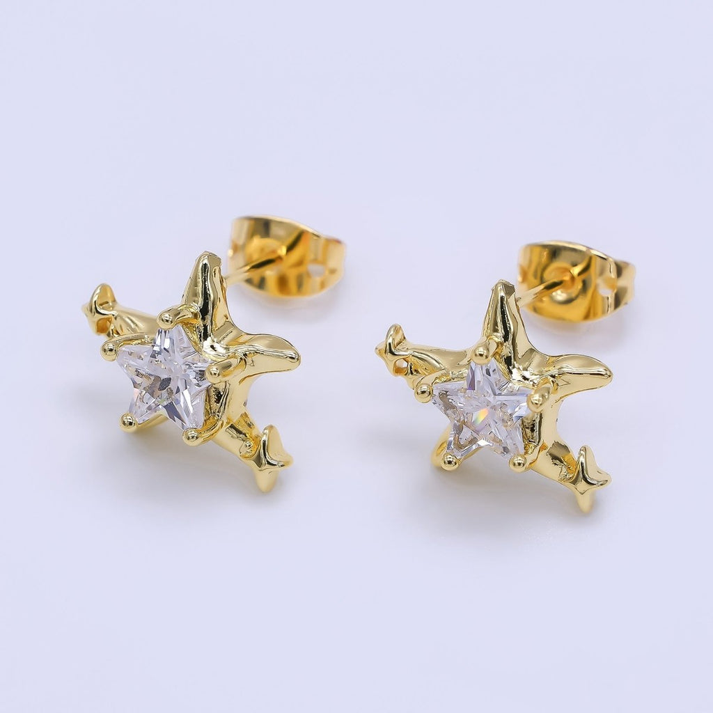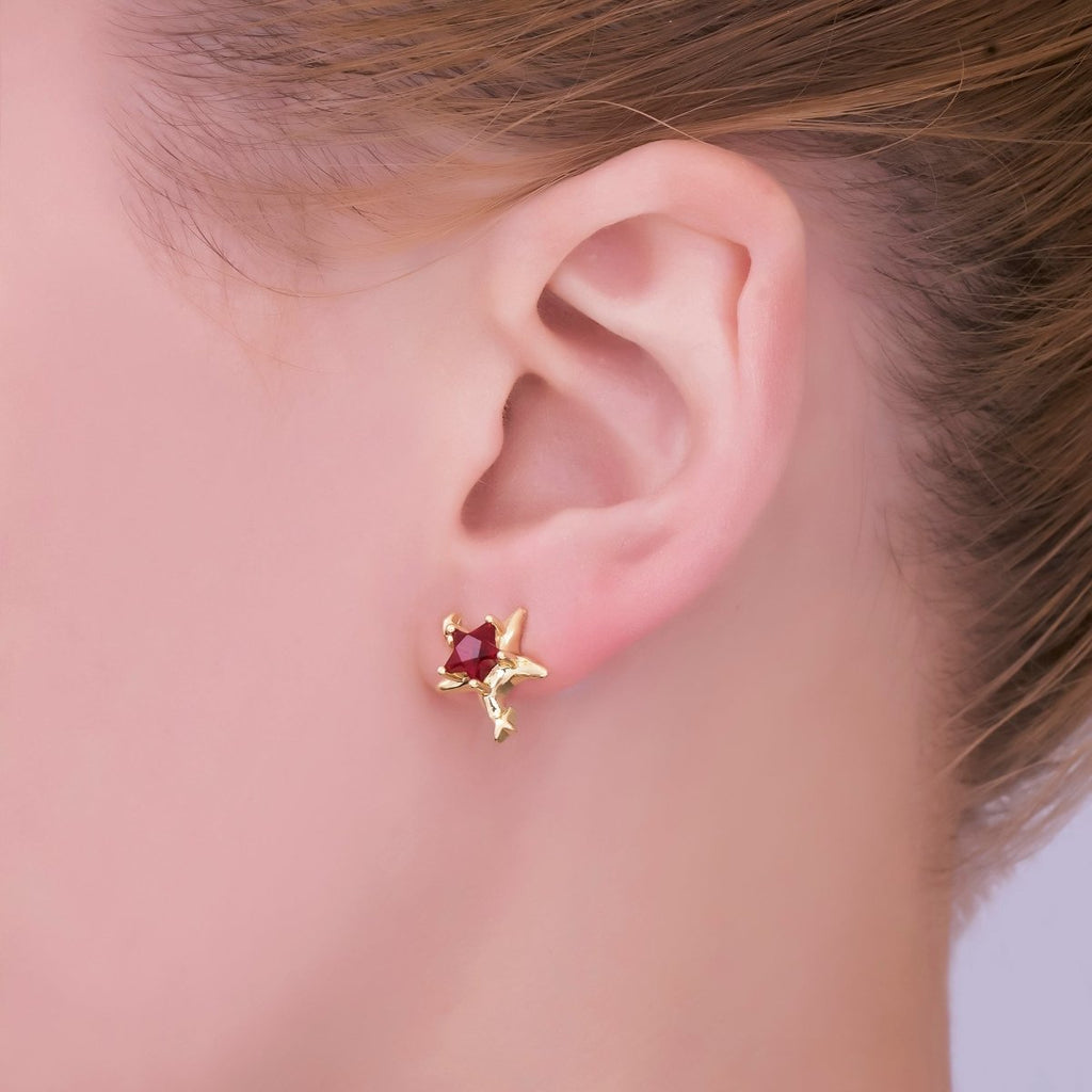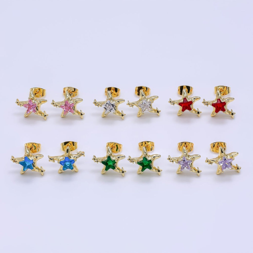 24K Gold Filled Green, Red, & Pink CZ Star-Shaped Stud Earrings | AJ-067 - AJ-072