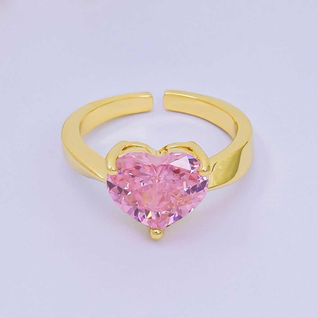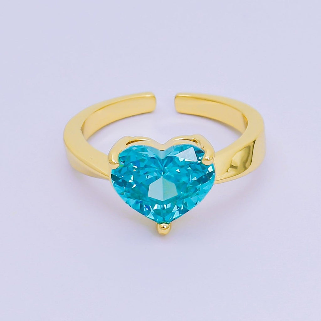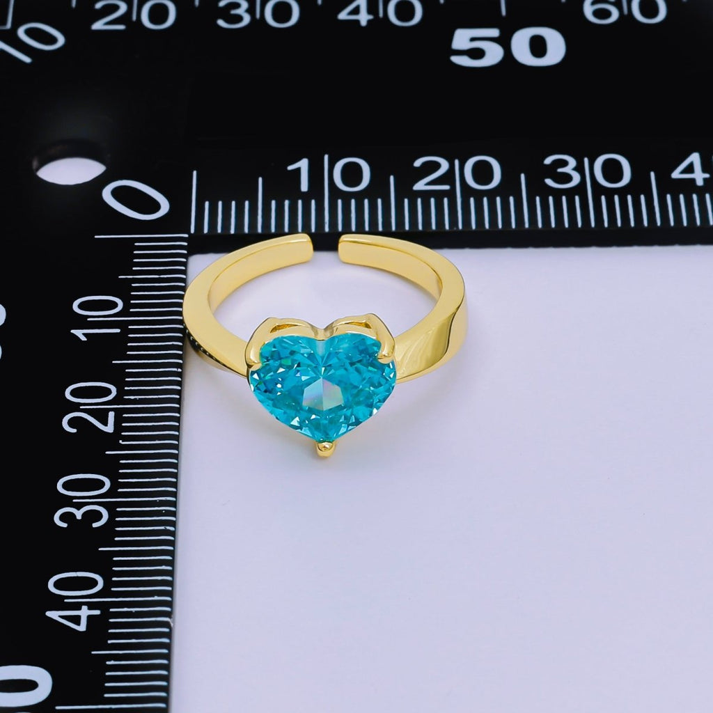 24K Gold Filled Heart-Shaped CZ Birthstone Adjustable Ring in Gold | O-033 O-063 O-073 O-084, O-104 - O-106, O-108, O-110 - O-114, O-116