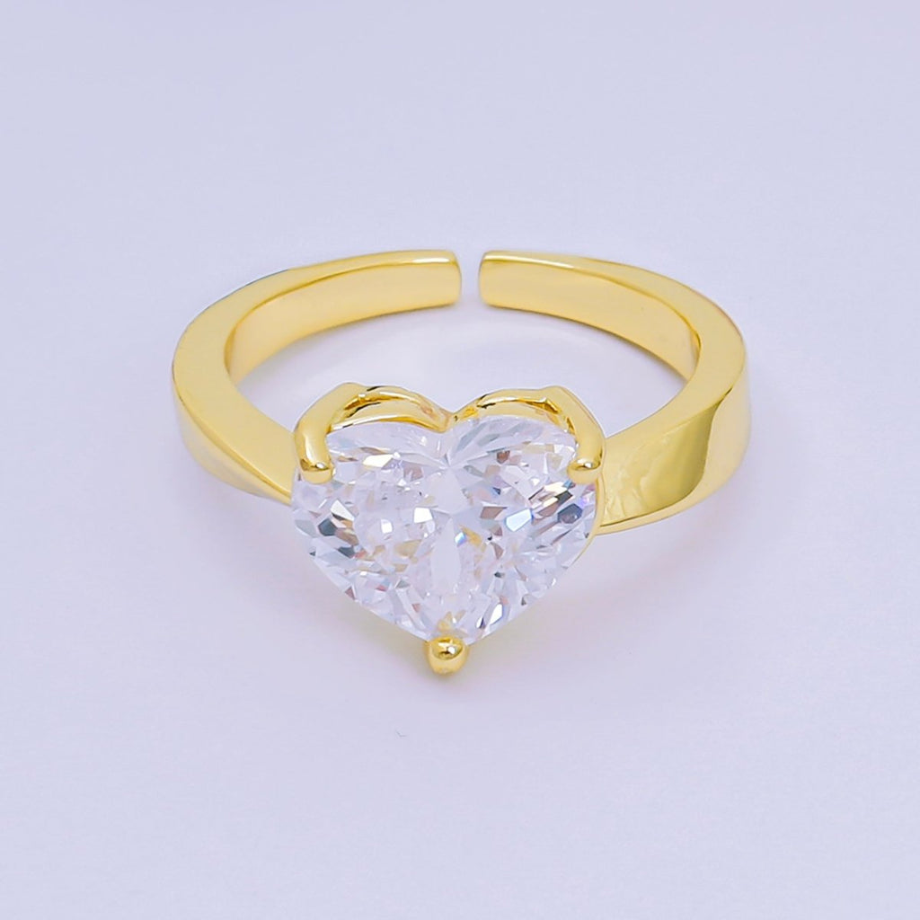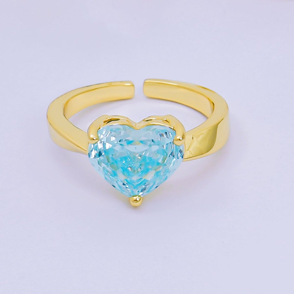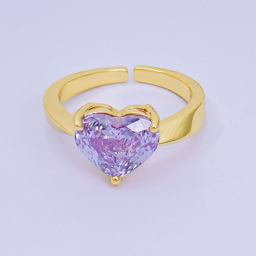 24K Gold Filled Heart-Shaped CZ Birthstone Adjustable Ring in Gold | O-033 O-063 O-073 O-084, O-104 - O-106, O-108, O-110 - O-114, O-116