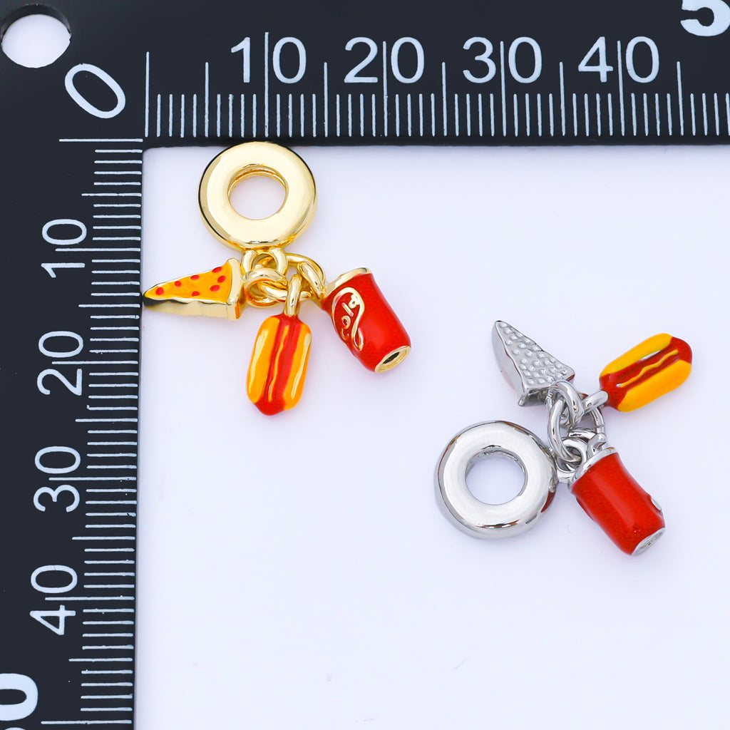 24K Gold Filled Junk Food Pizza hot Dog Soda Enamel Rondelle Drop Pendant | AF1541