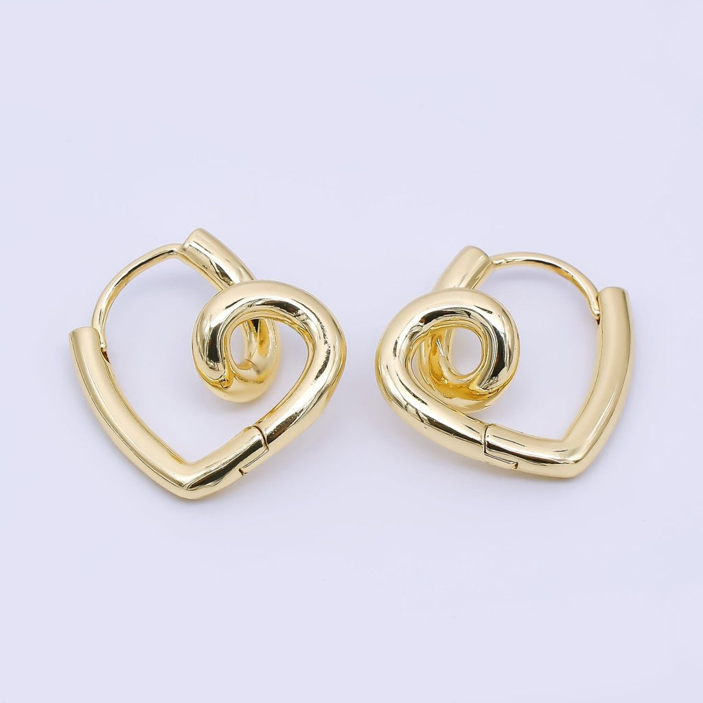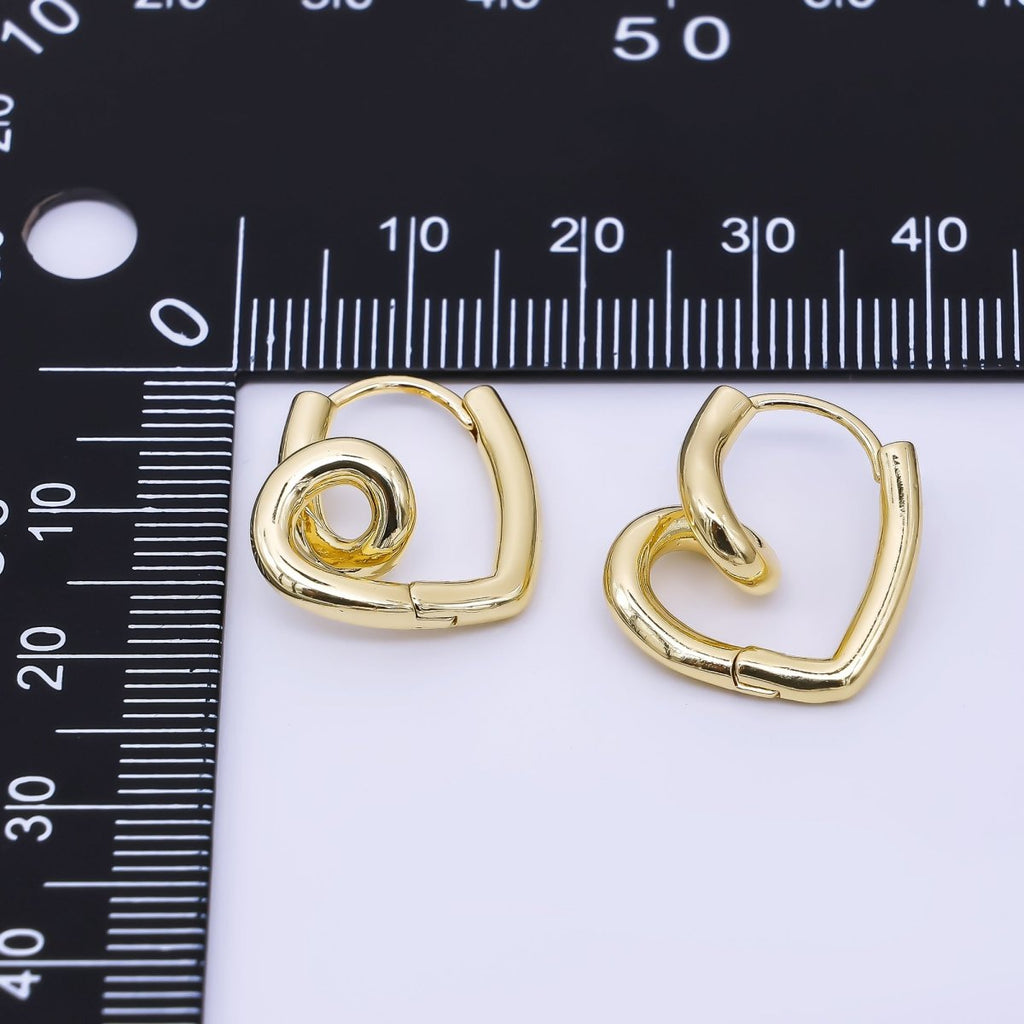 24K Gold Filled Love Twirled Heart Hinged Huggie Hoops Earrings | AJ-066