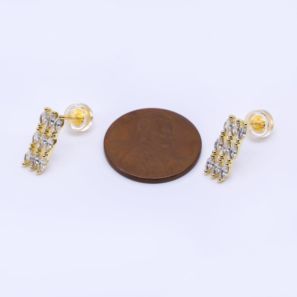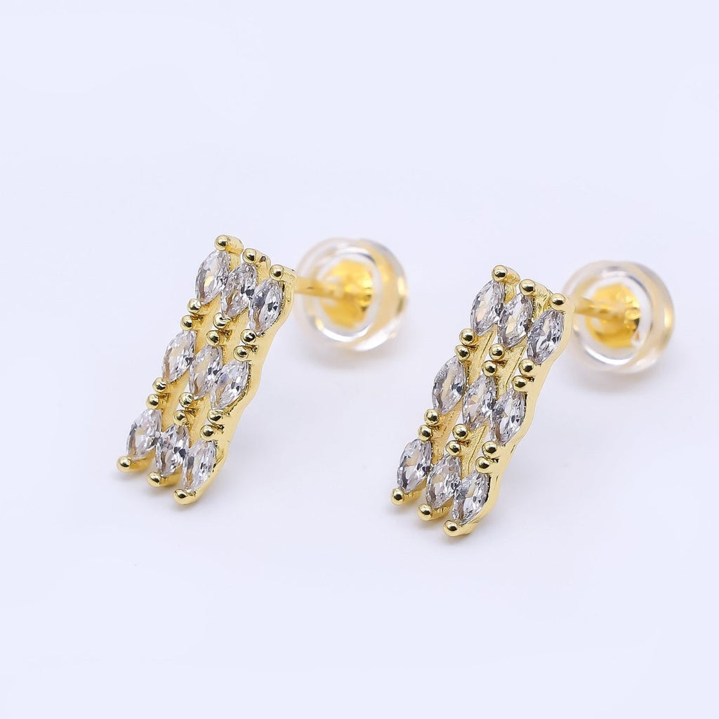24K Gold Filled Marquise CZ Triple Lined Row Dropped Stud Earrings | AI-452