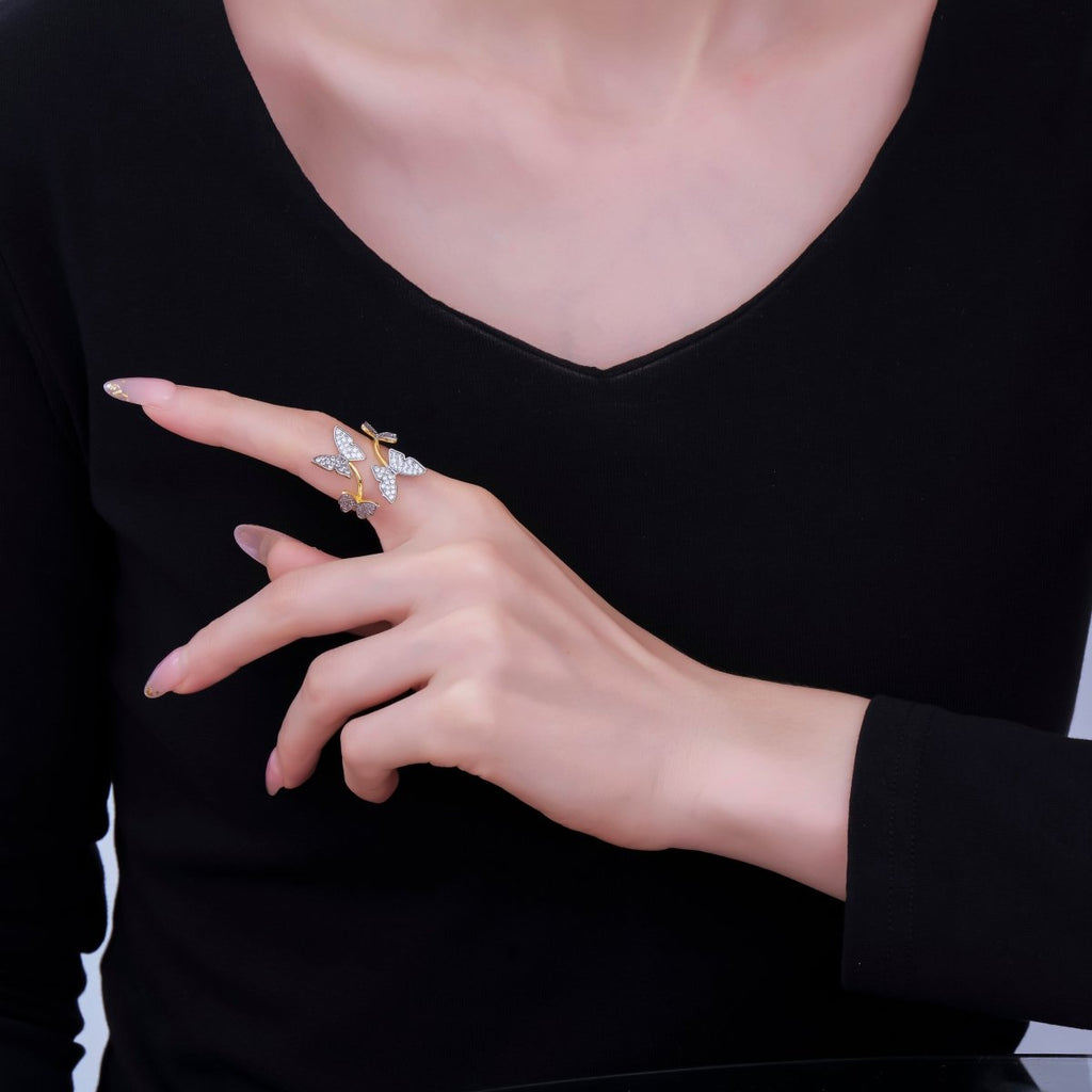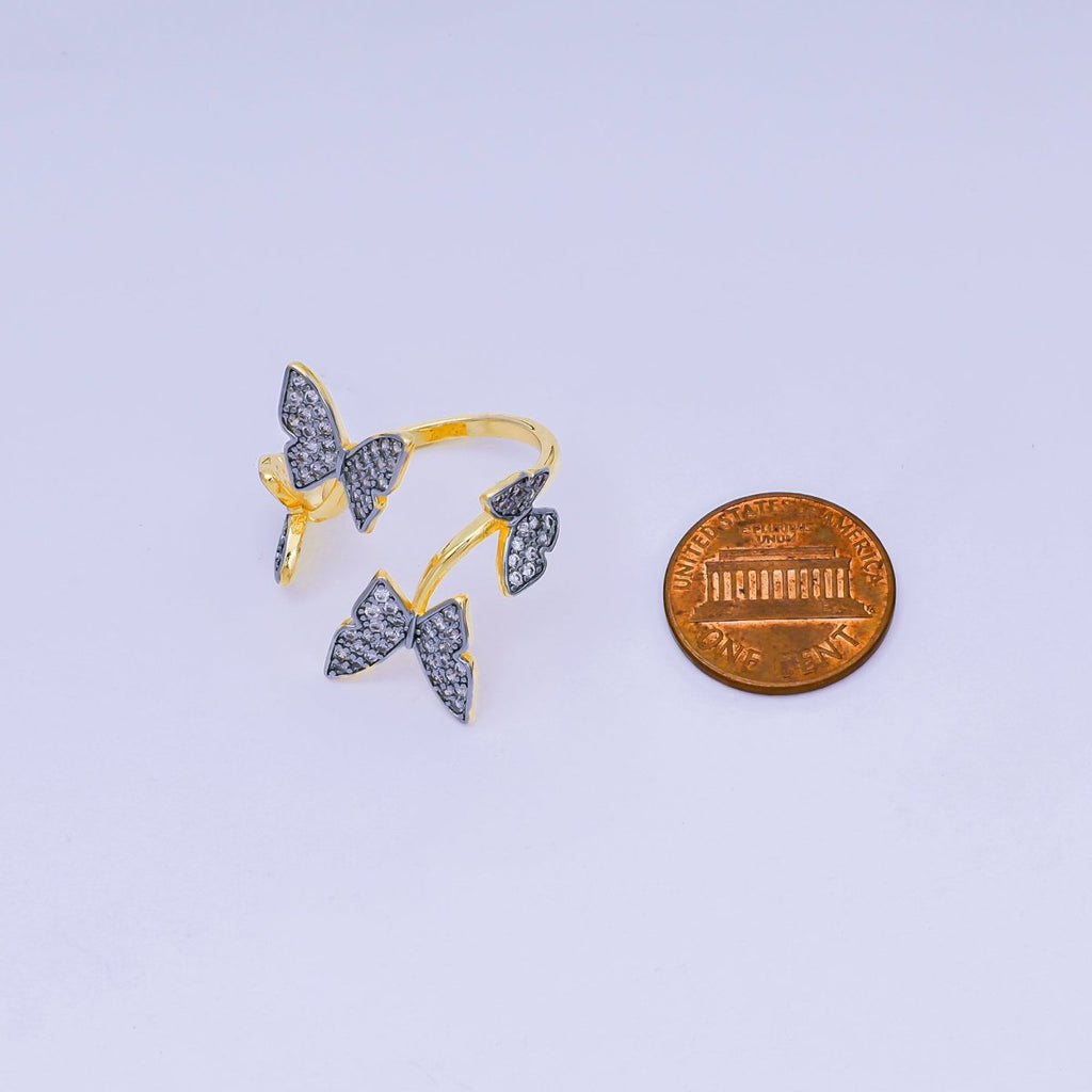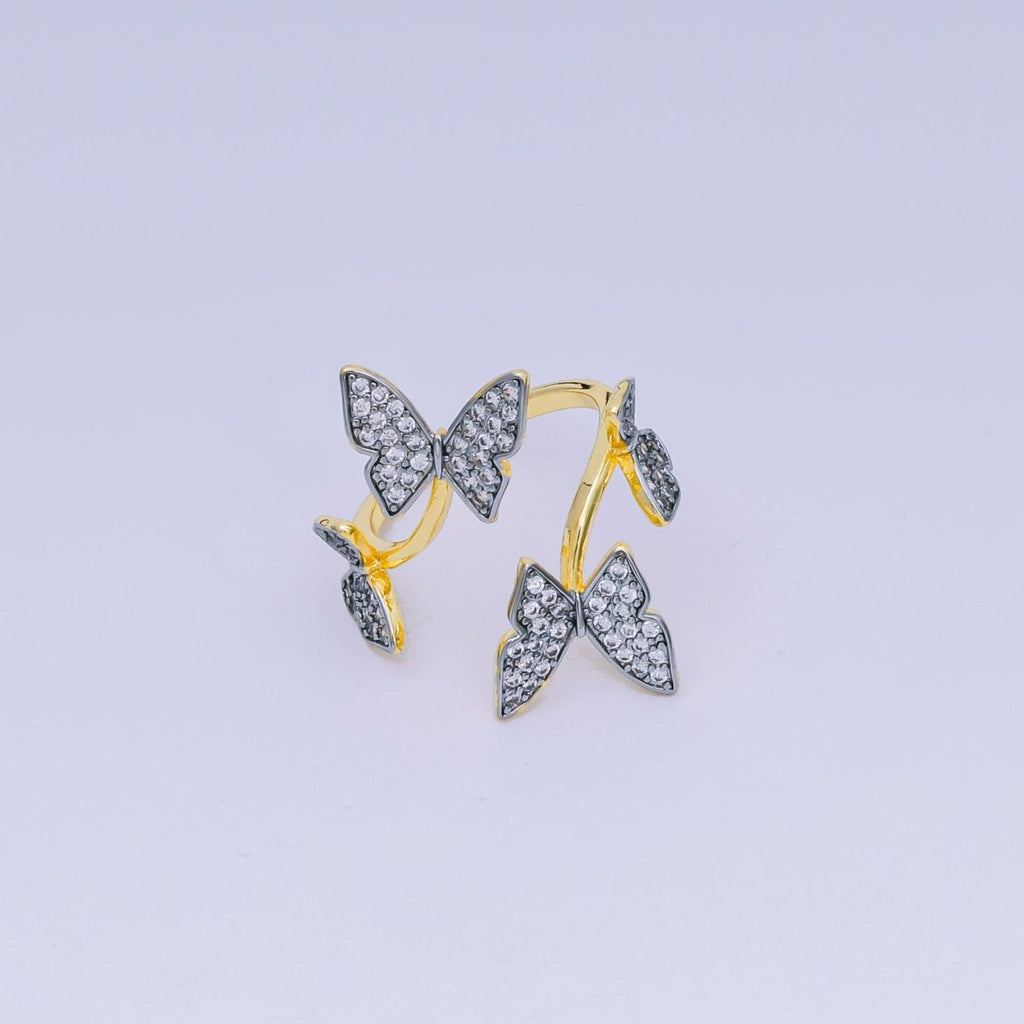 24K Gold Filled Micro Paved CZ Two-Tone Butterfly Garden Adjustable Ring | O-1488
