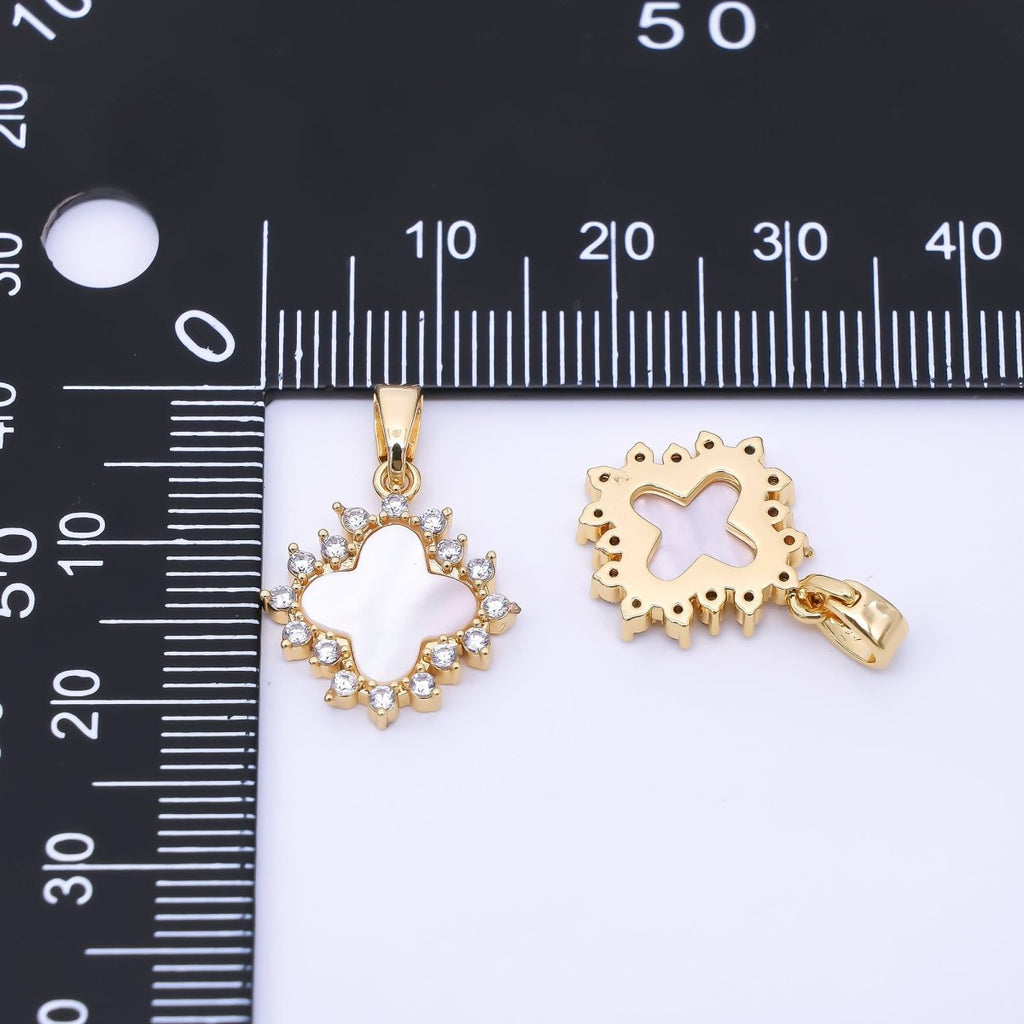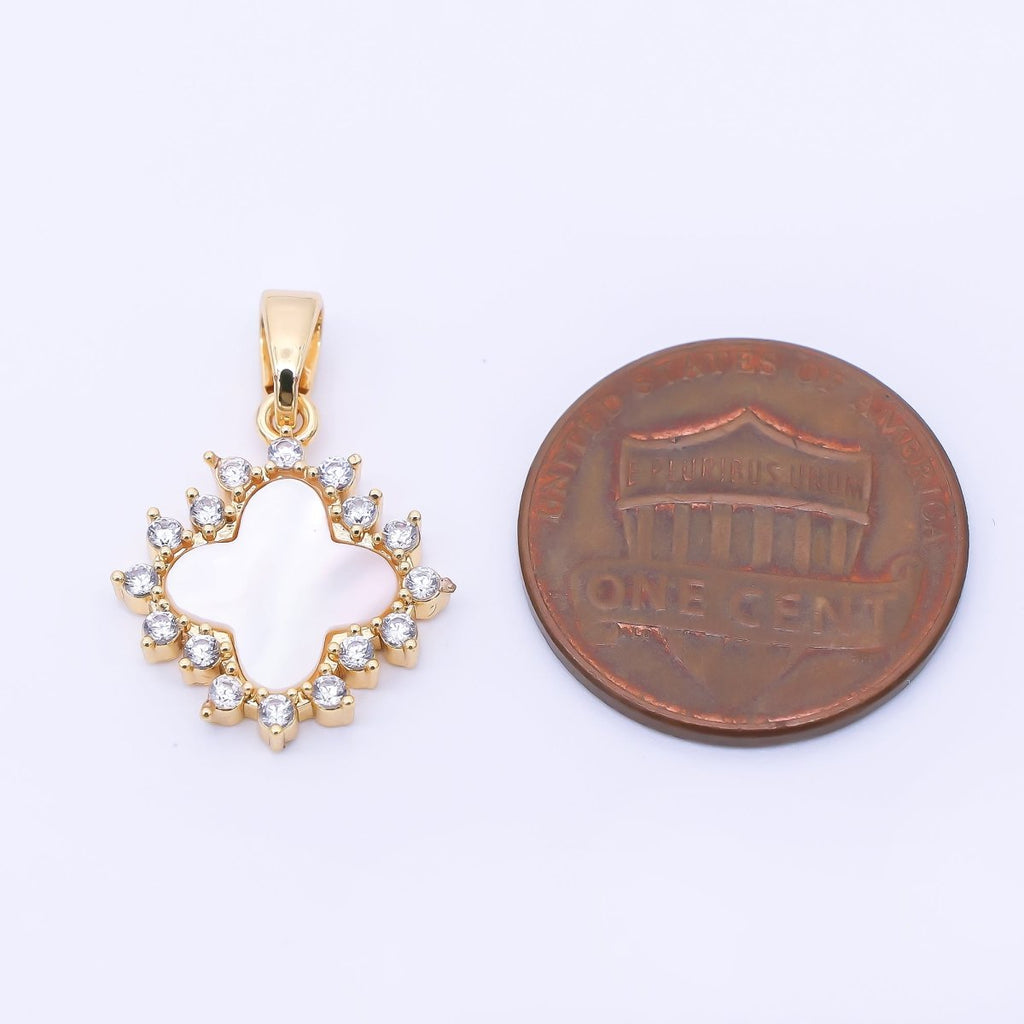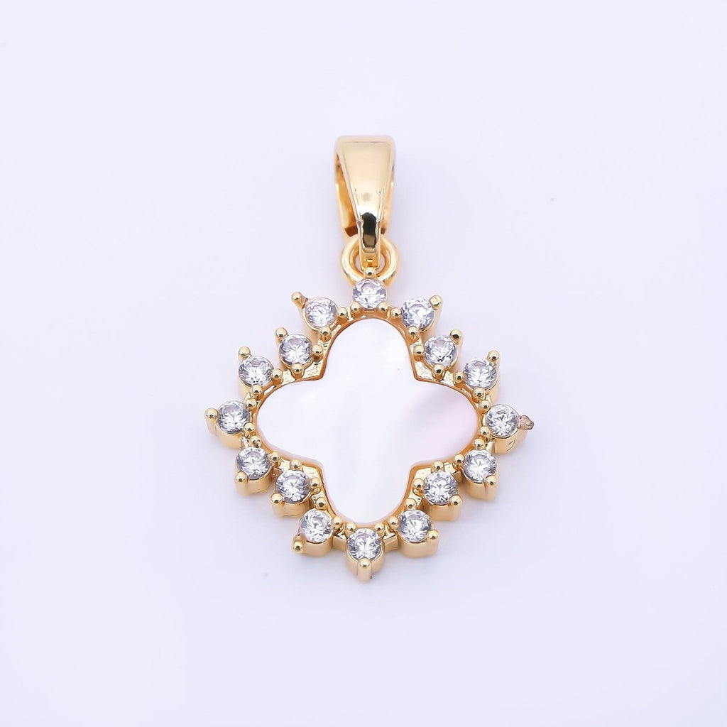 24K Gold Filled Micro Paved CZ Mother of Pearl Lucky Clover Pendant | AA1644