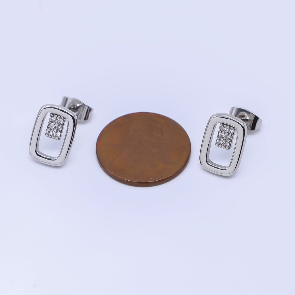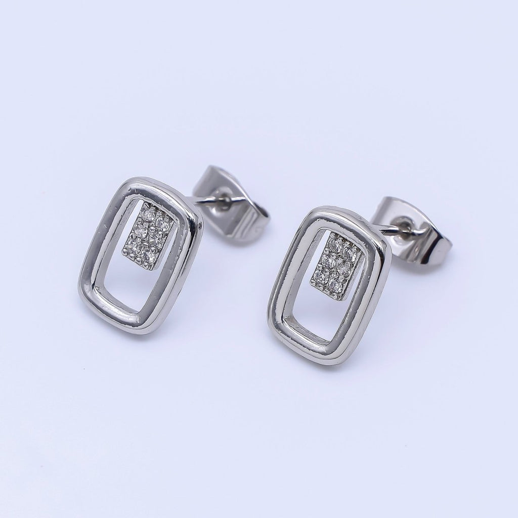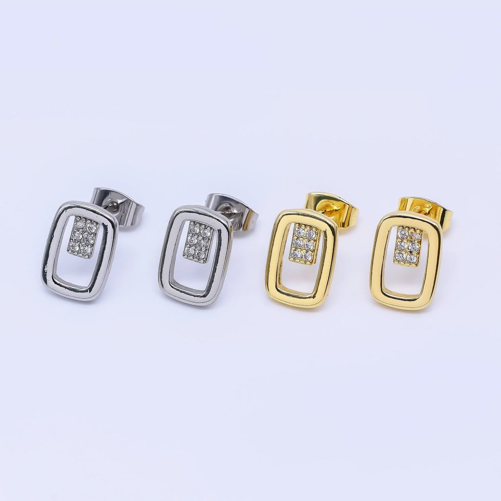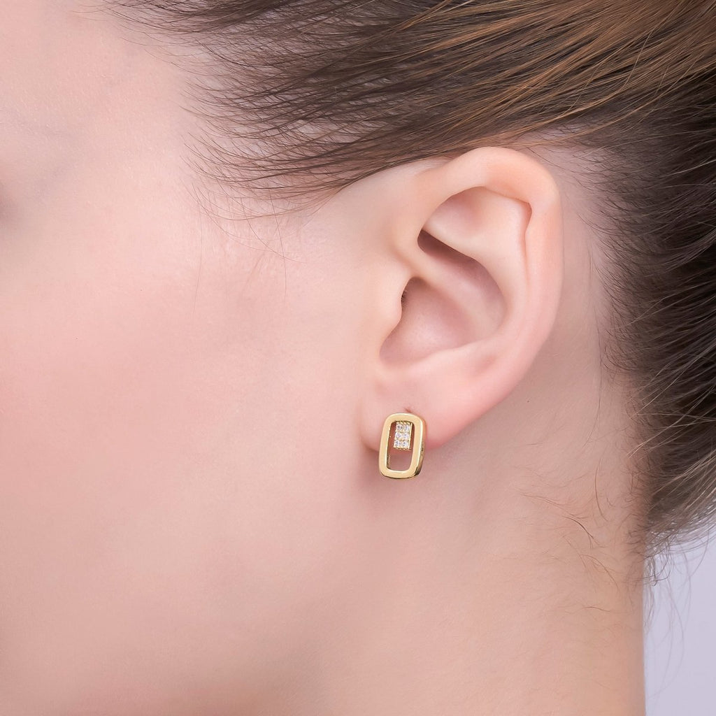 24K Gold Filled Micro Paved CZ Open Oval Centerpoint Stud Earrings in Gold & Silver | AI-425 AI-426