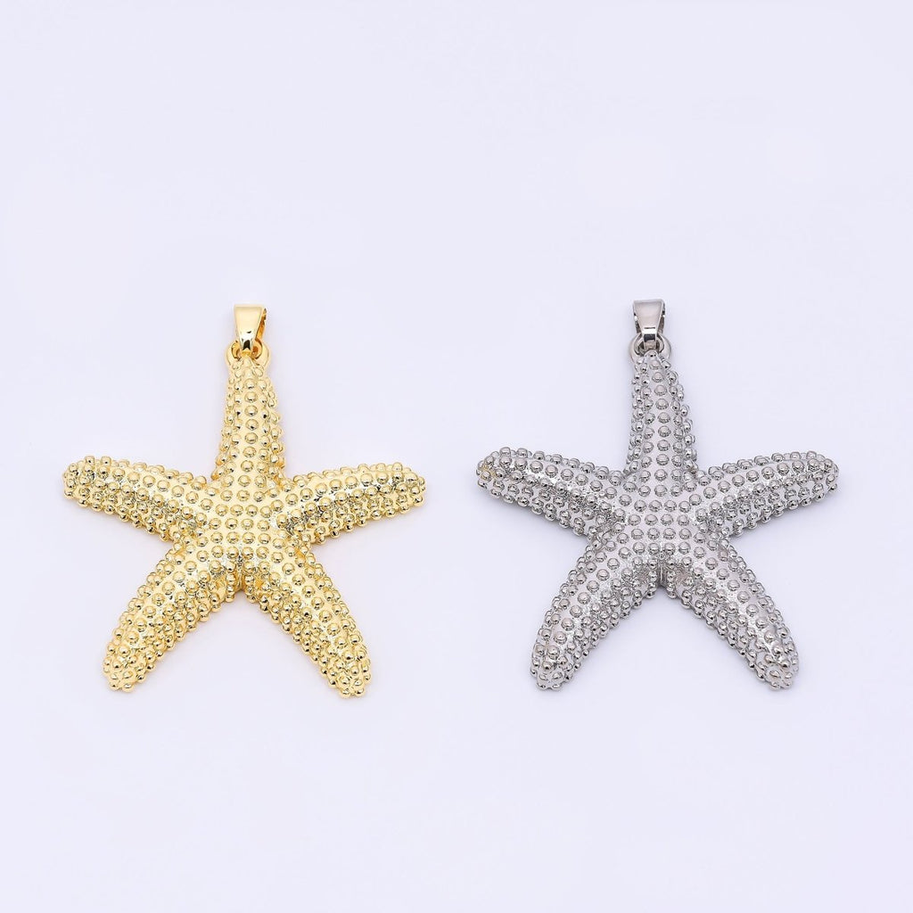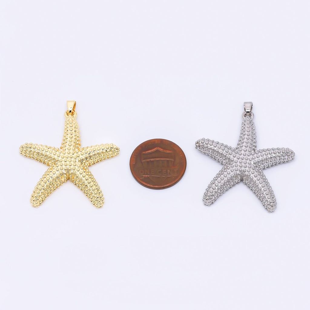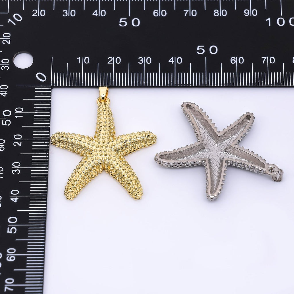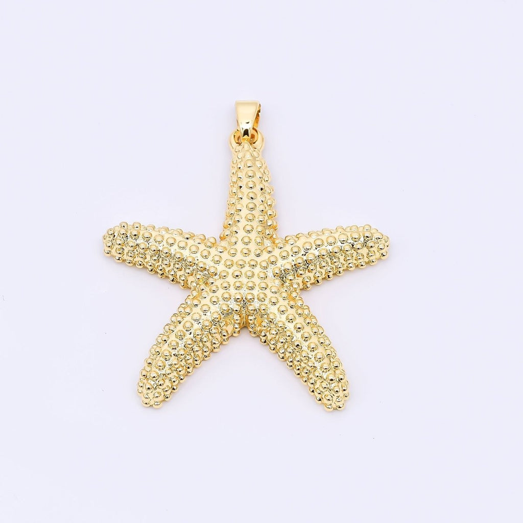 24K Gold Filled 37mm Dotted Sea Starfish Animal Charm | AH-532