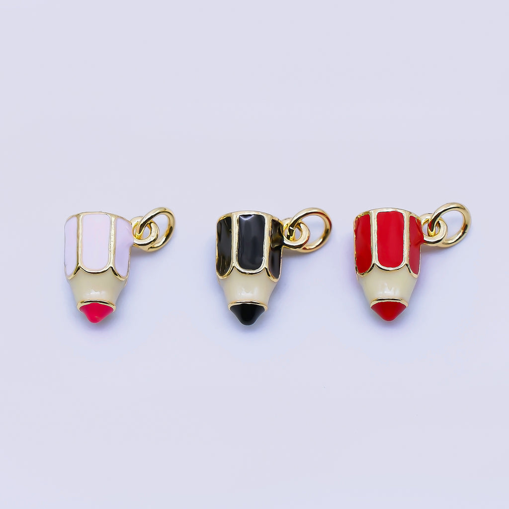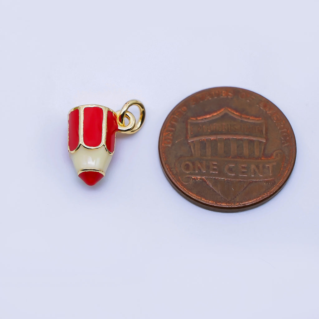 24K Gold Filled Pencil Charm 3D Multidimensional School Teacher Pendant | AF1561