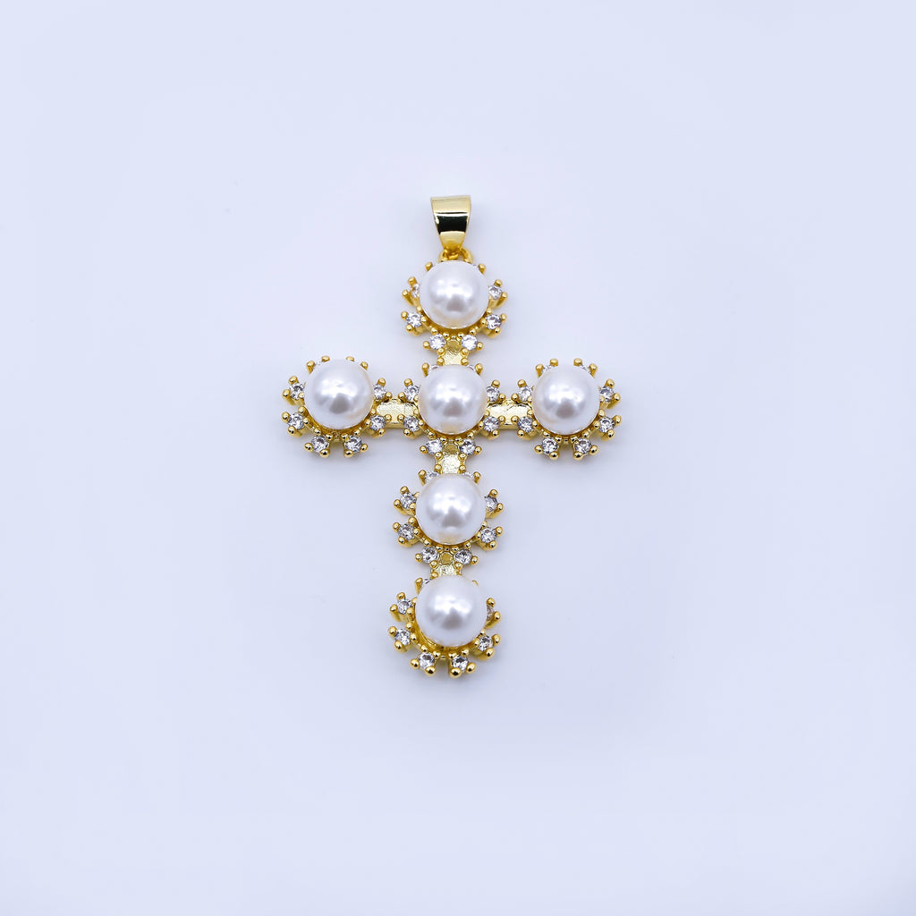 24K Gold Filled 40mm Shell Pearl Micro Paved CZ Religious Cross Pendant | AA1671