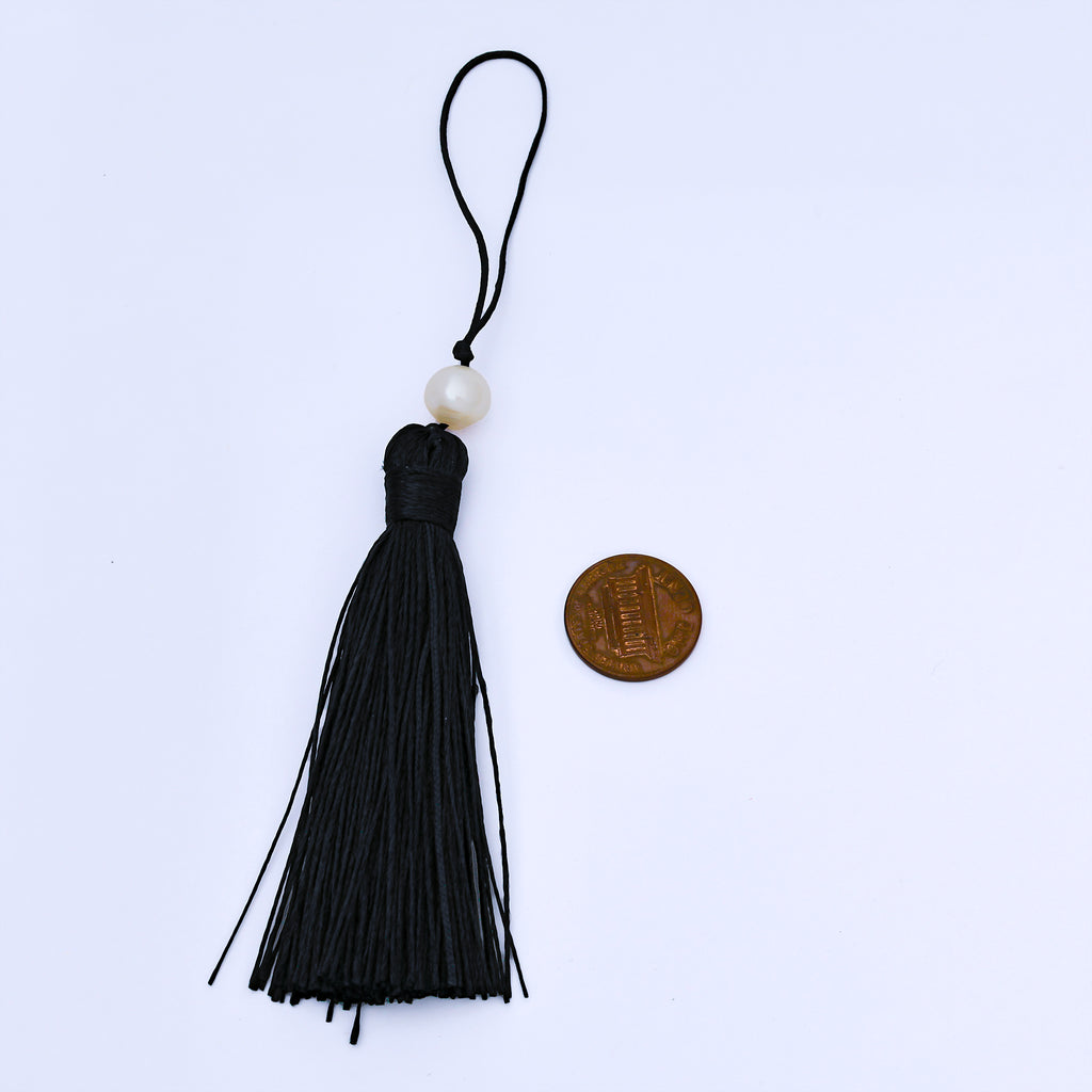 Black Silk Tassel with Pearl Accent Decorative Pendant for Jewelry or Accessories Z1501