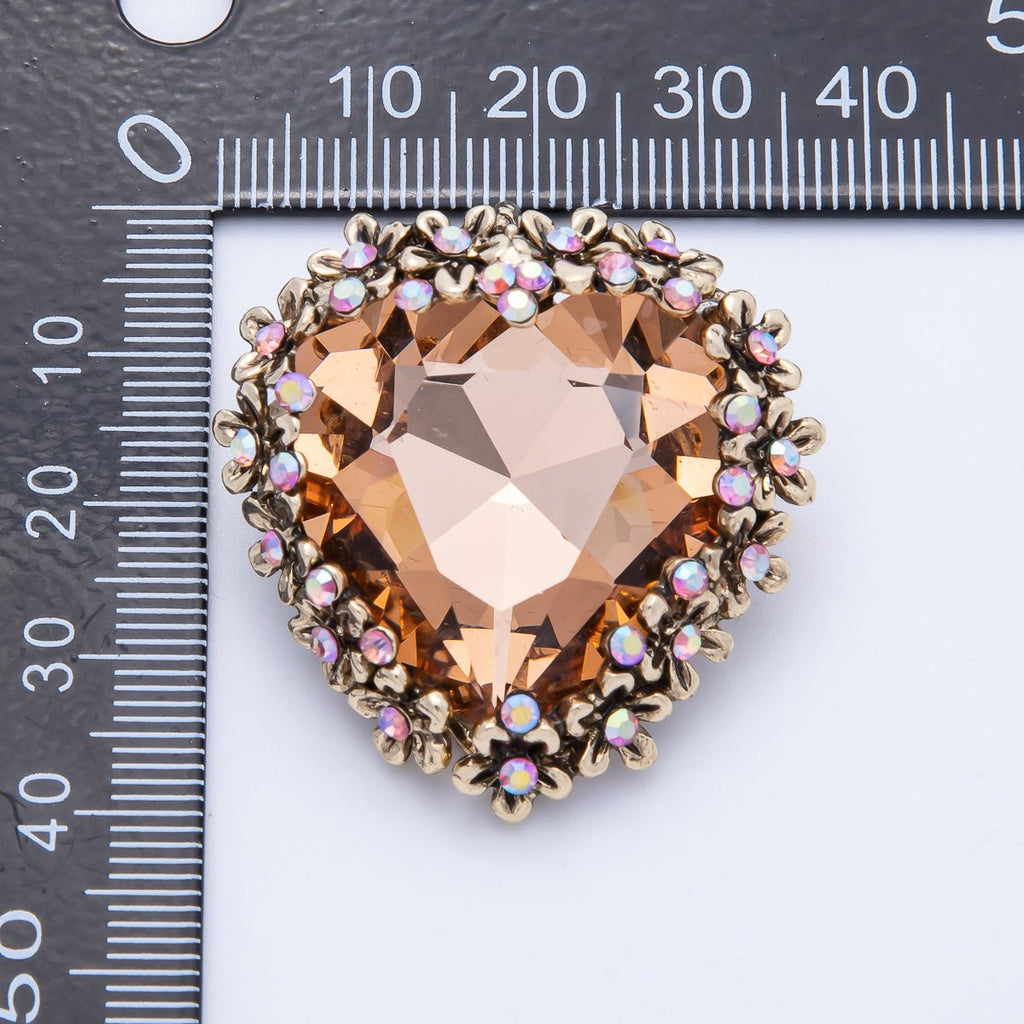 Gold 37mm x 36mm Orange Rhinestone Heart Pin Brooch | BH-067