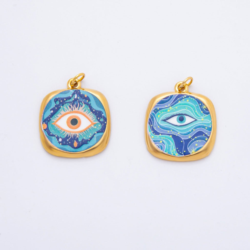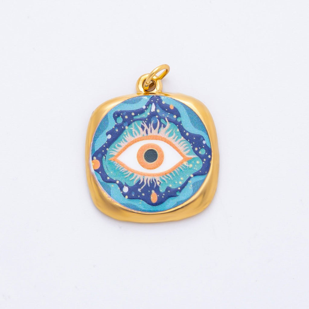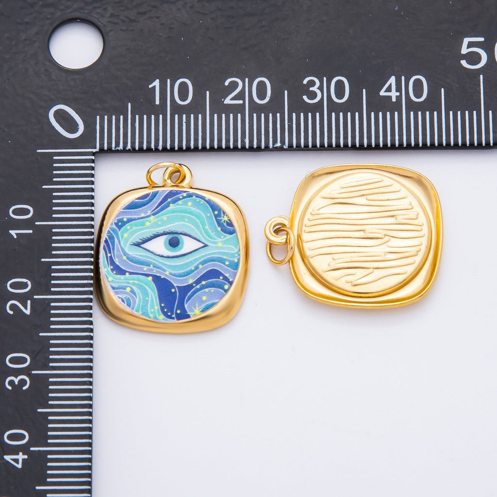 Gold Stainless Steel 26mm Enamel Aurora Style Evil Eye Charm | J664 J674