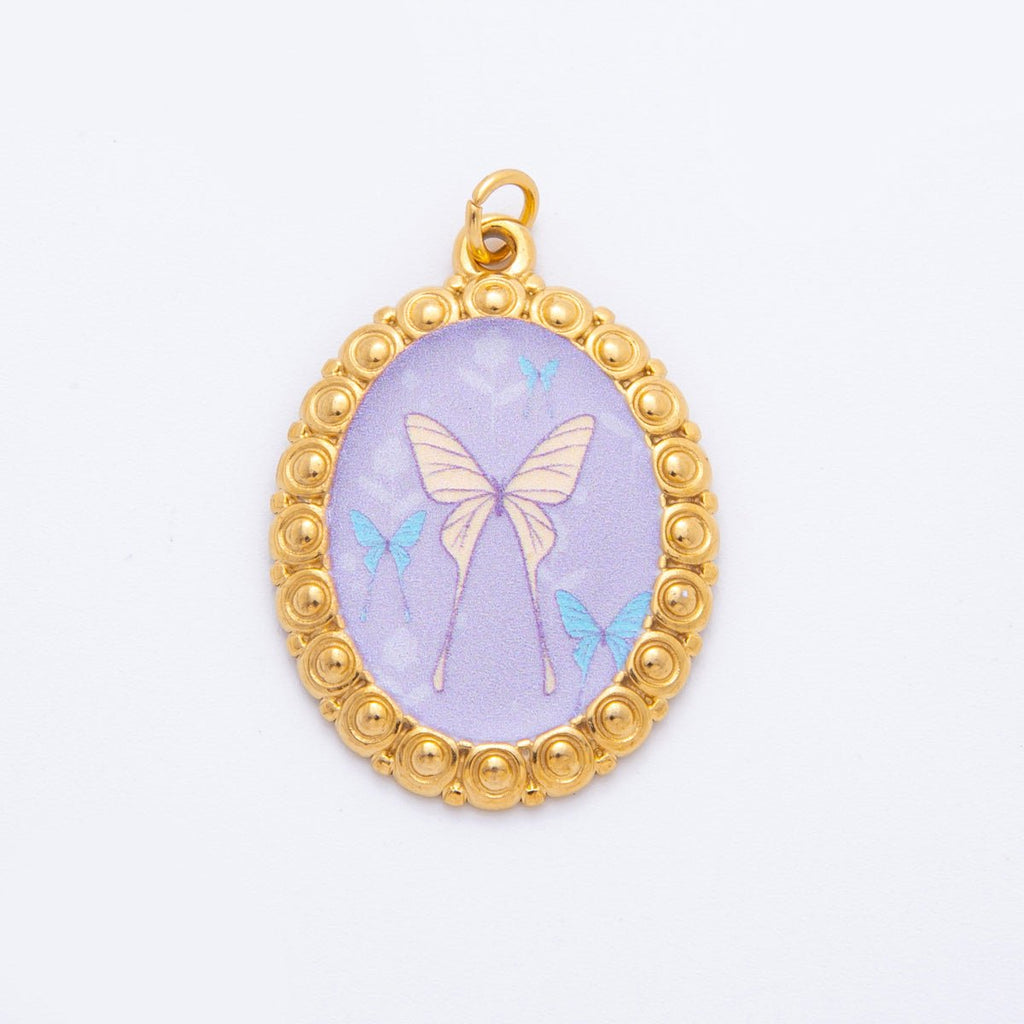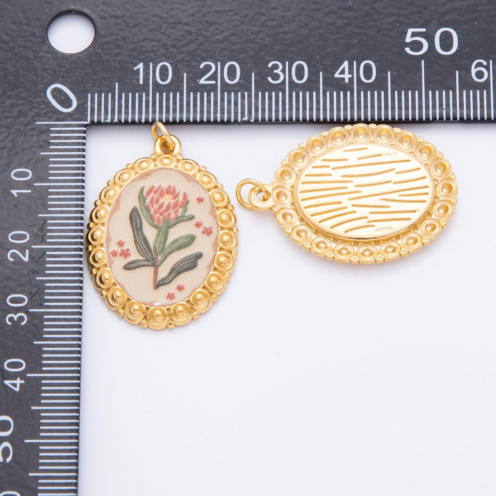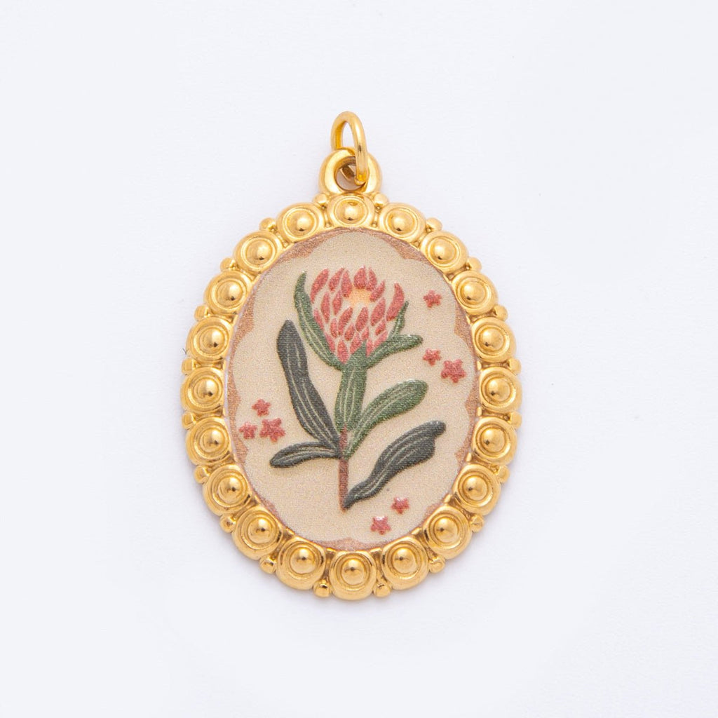 Gold Stainless Steel 33.5mm Hand-Painted Enamel Red Flower Artsy Charm | J011 J008 J009 J027