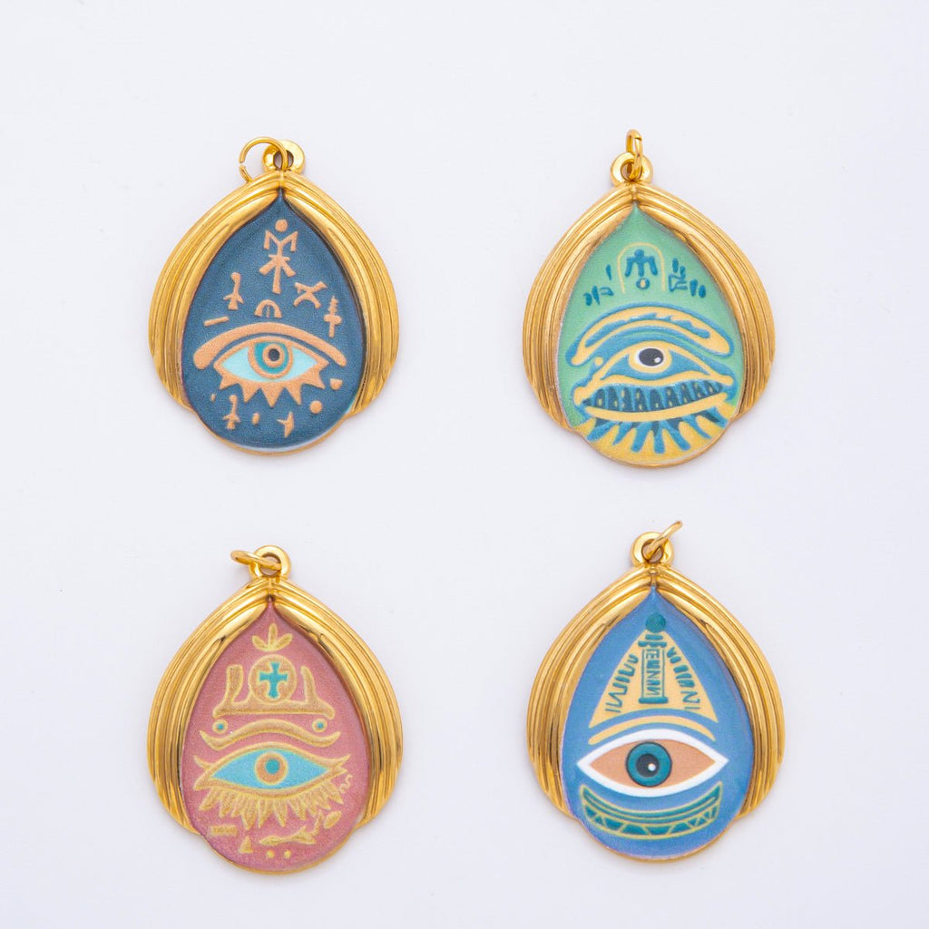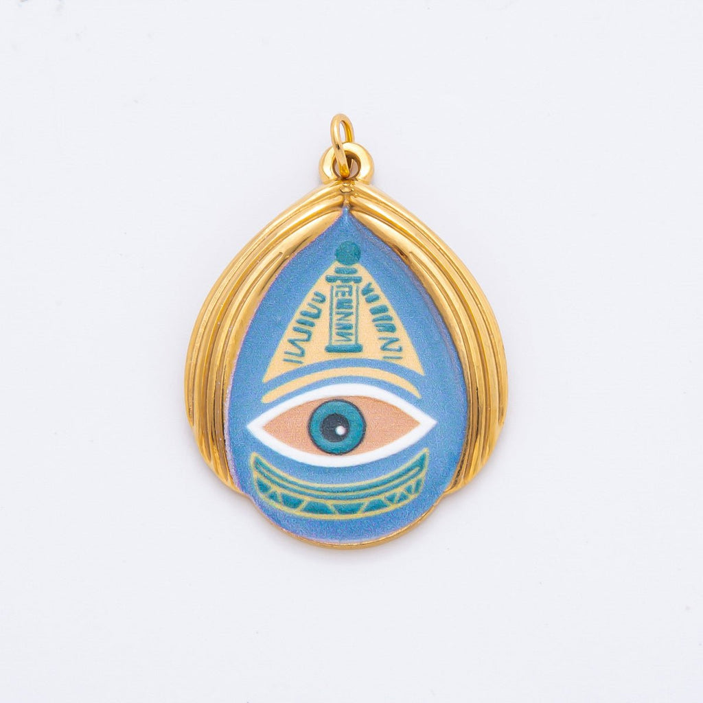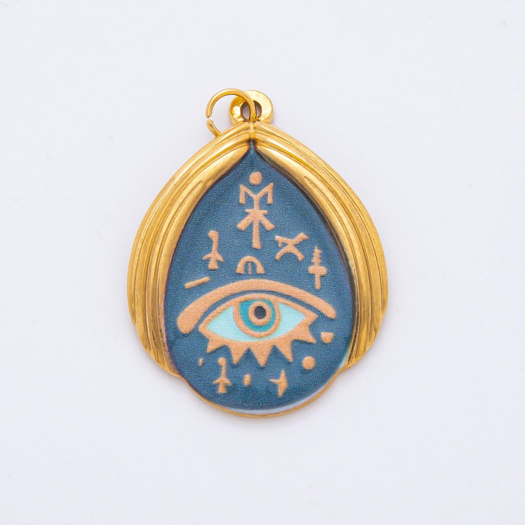 Gold Stainless Steel 35mm Hand-Painting Enamel Teardrop Evil Eye Charm | J699 J709 J712 J717