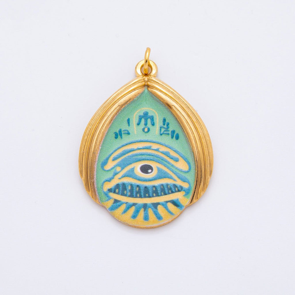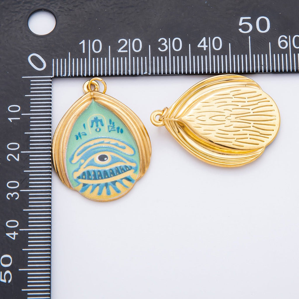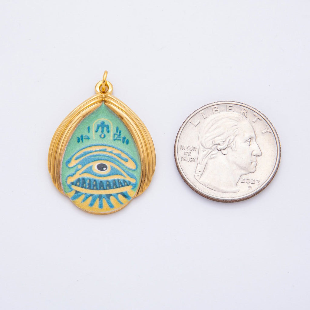 Gold Stainless Steel 35mm Hand-Painting Enamel Teardrop Evil Eye Charm | J699 J709 J712 J717
