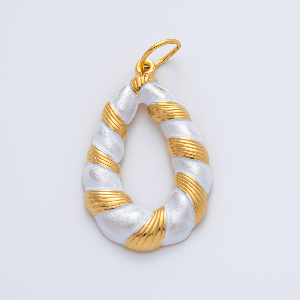 Gold Stainless Steel 43mm Handpainted White Enamel Croissant Charm | J876