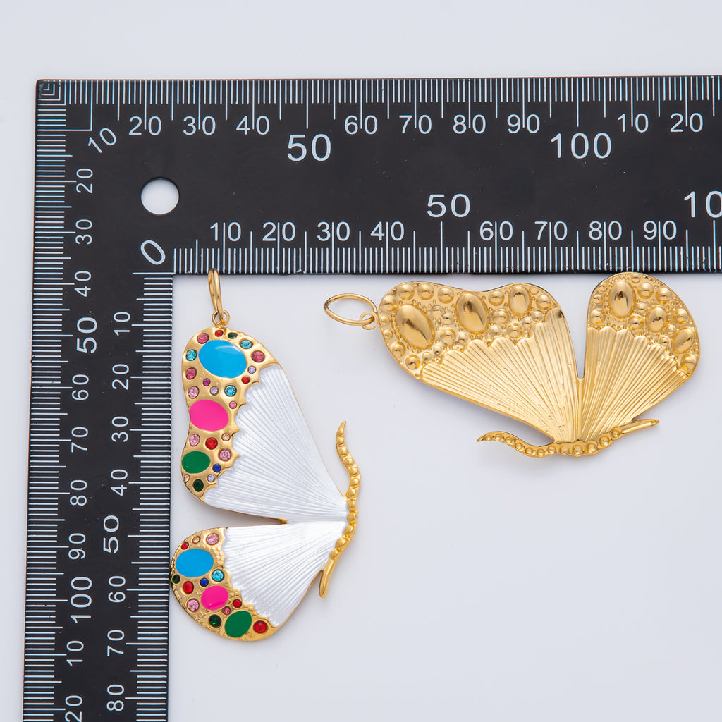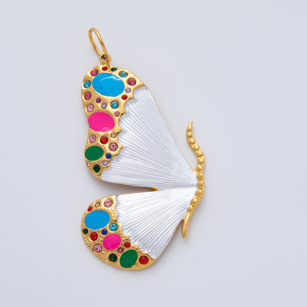 Gold Stainless Steel 62mm Handpainted Enamel Butterfly Charm | J890