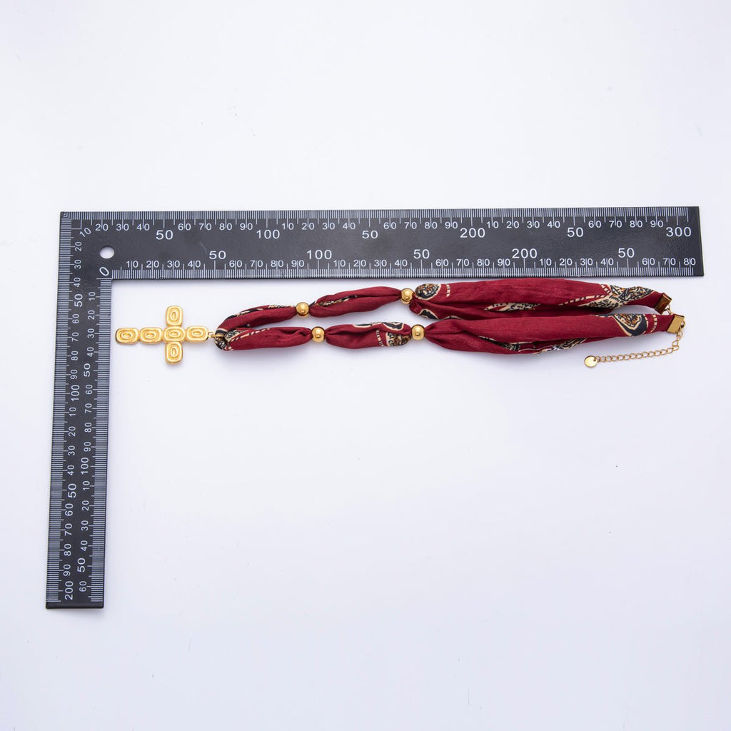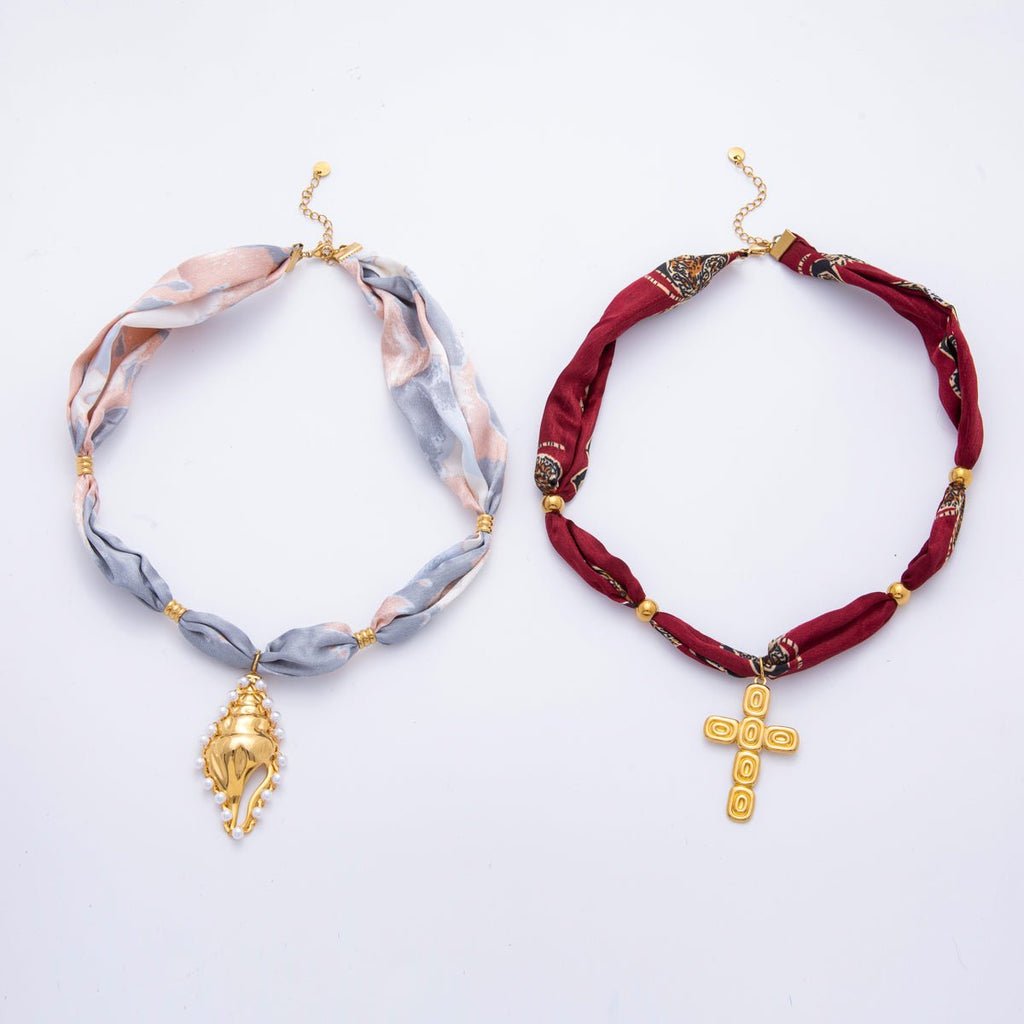 Stainless Steel Conch Sea Shell, Religious Cross Smooth Silk Scarf Handmade Necklace | WA-3779 WA-3780