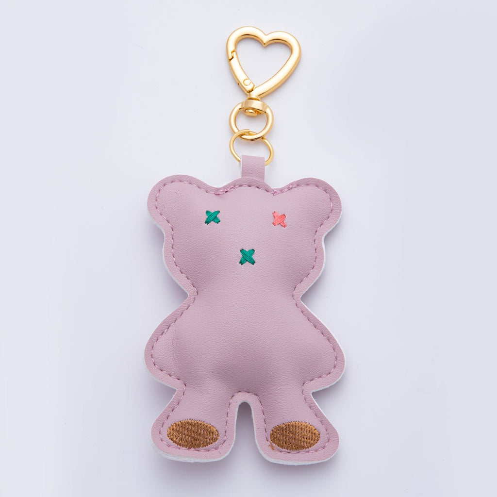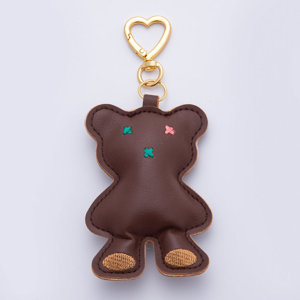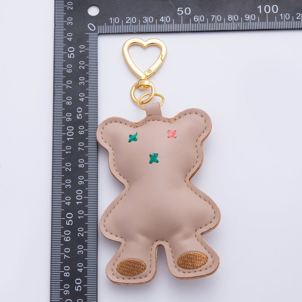 18K Gold Filled Light Brown, Black, Dark Brown, Pink Bear Leather Plush Bag Charm Keychain Heart Key Ring Accessories | WB-00042 ~ WB-00045