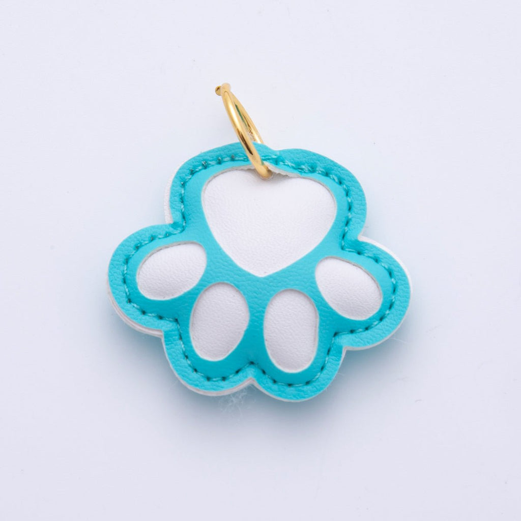 Leather Dog Paw Print Keyring Purse Bag Backpack Charm Dog Collar Accessory WB-00017