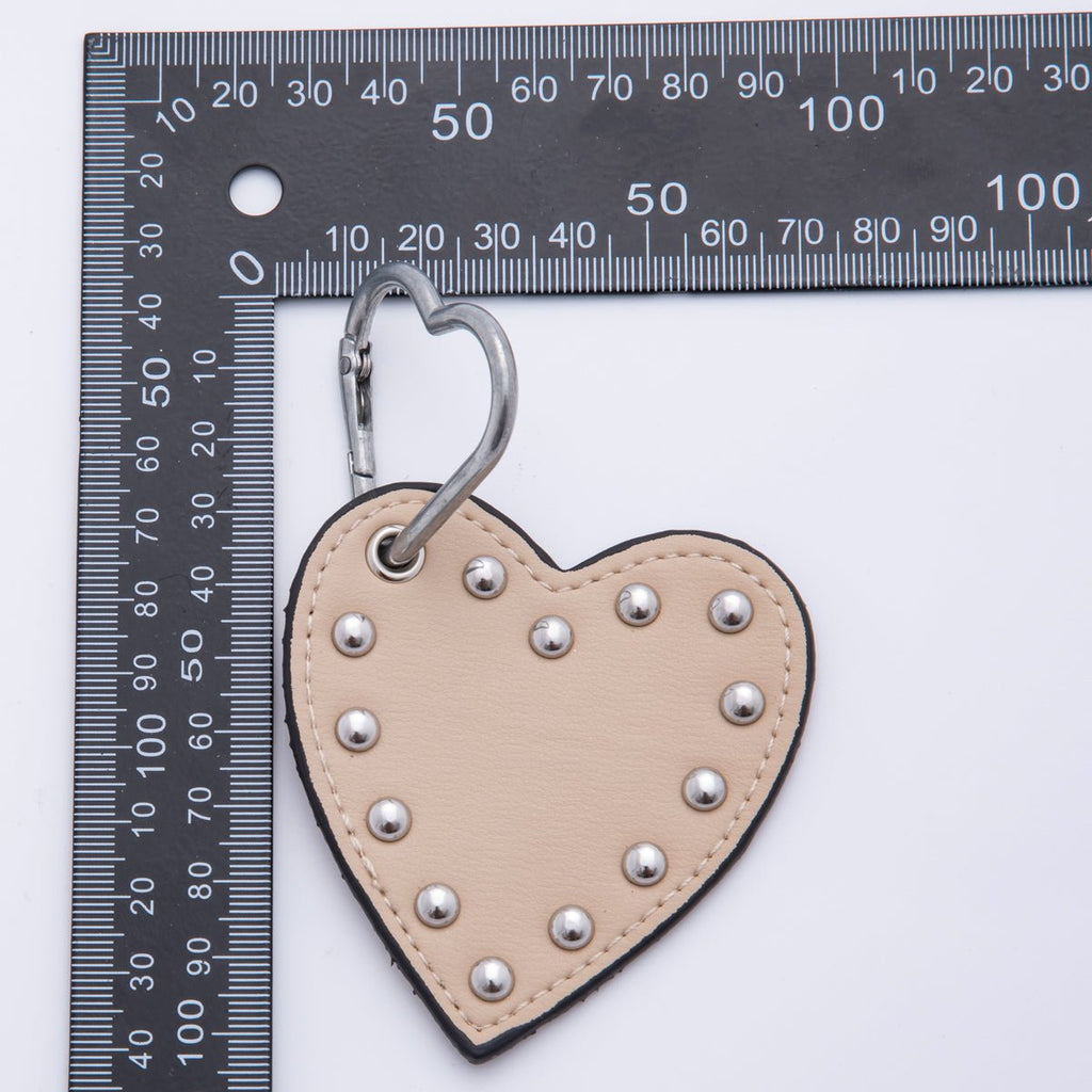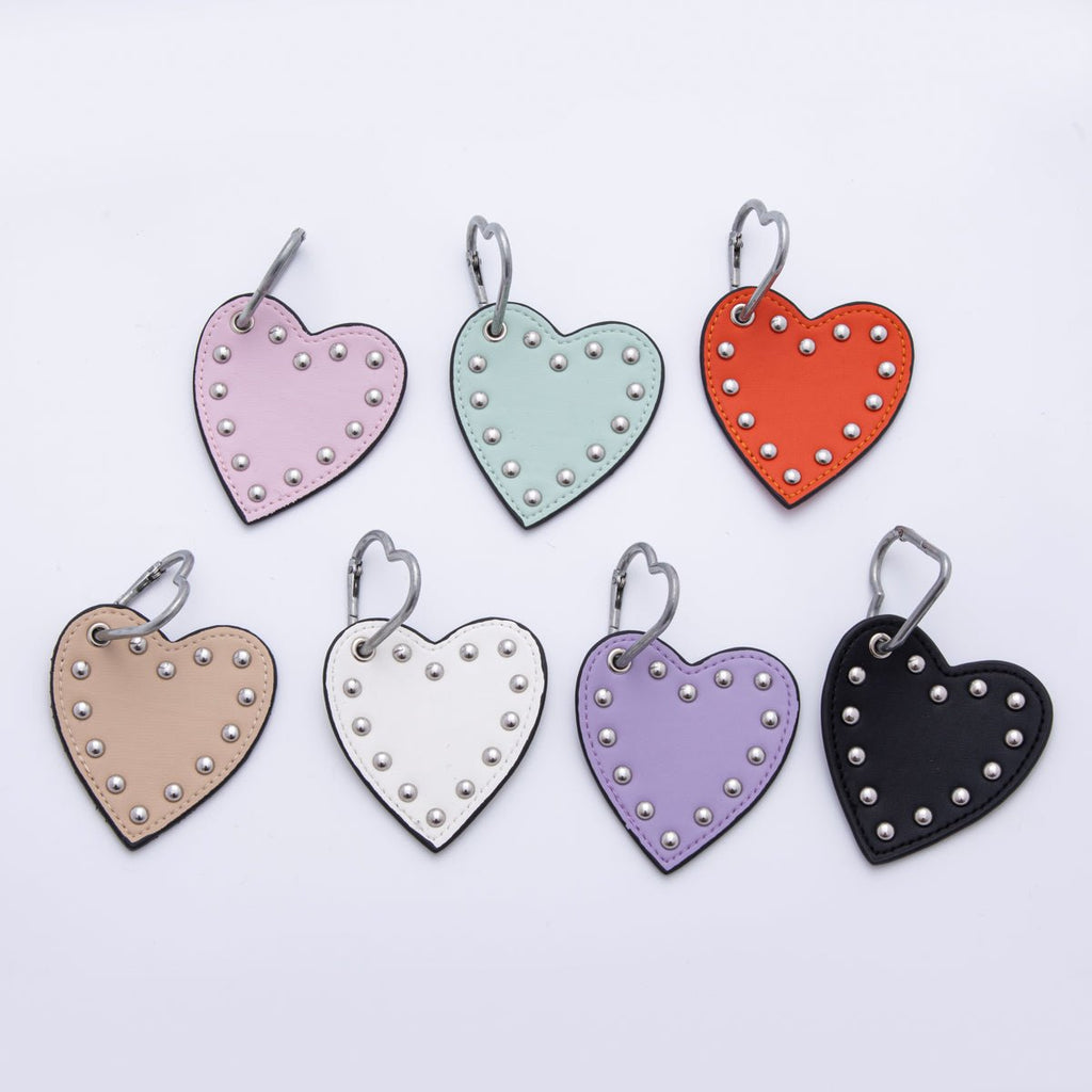 White, Black, Purple, Orange, Brown, Pink, Green Heart Stud Leather Bag Charm Keychain Accessories | WB-00088 ~ WB-00094