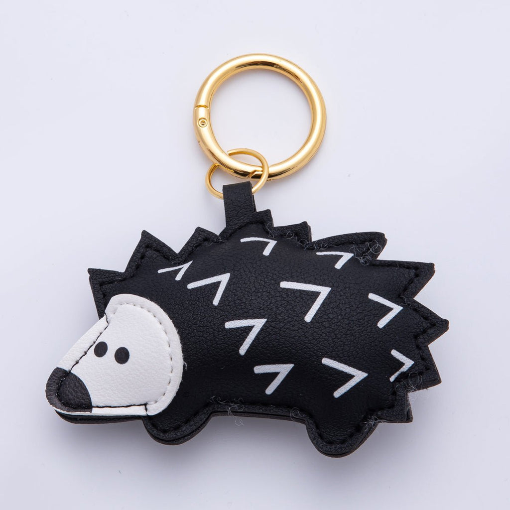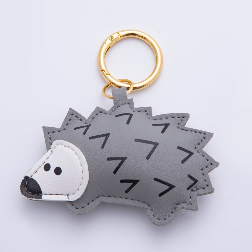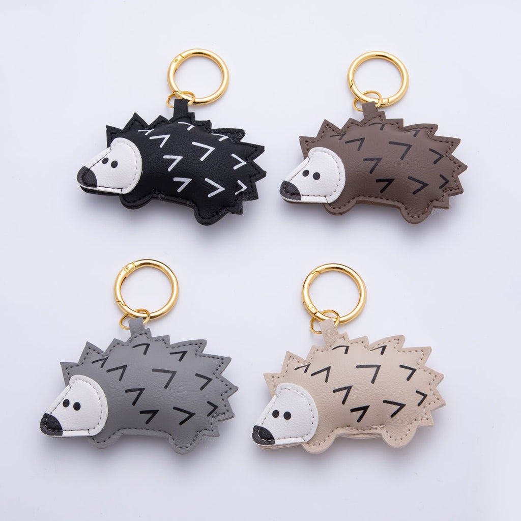 18K Gold Filled Grey, Beige, Black, Brown Hedgehog Porcupine Leather Bag Charm Keychain Push Gate Key Ring Accessories | WB-00101 ~ WB-00104