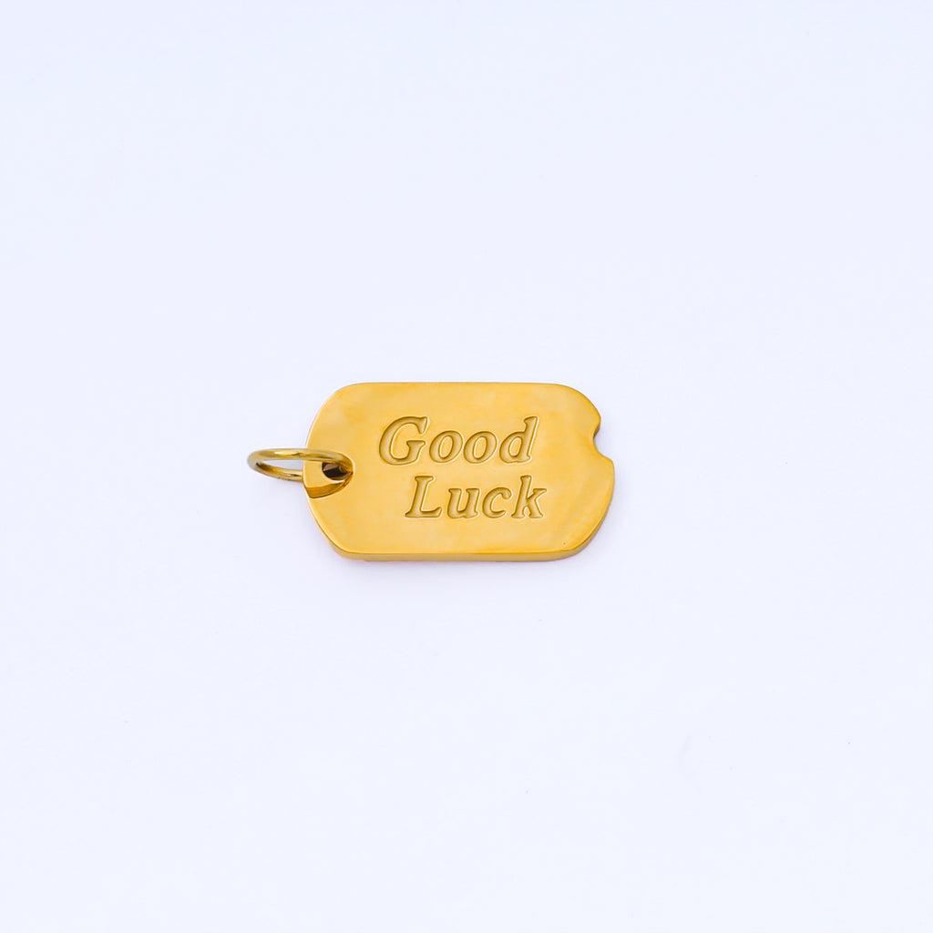 PVD Gold Stainless Steel 10mm Military Tag Good Luck Charm Words Pendant | J547