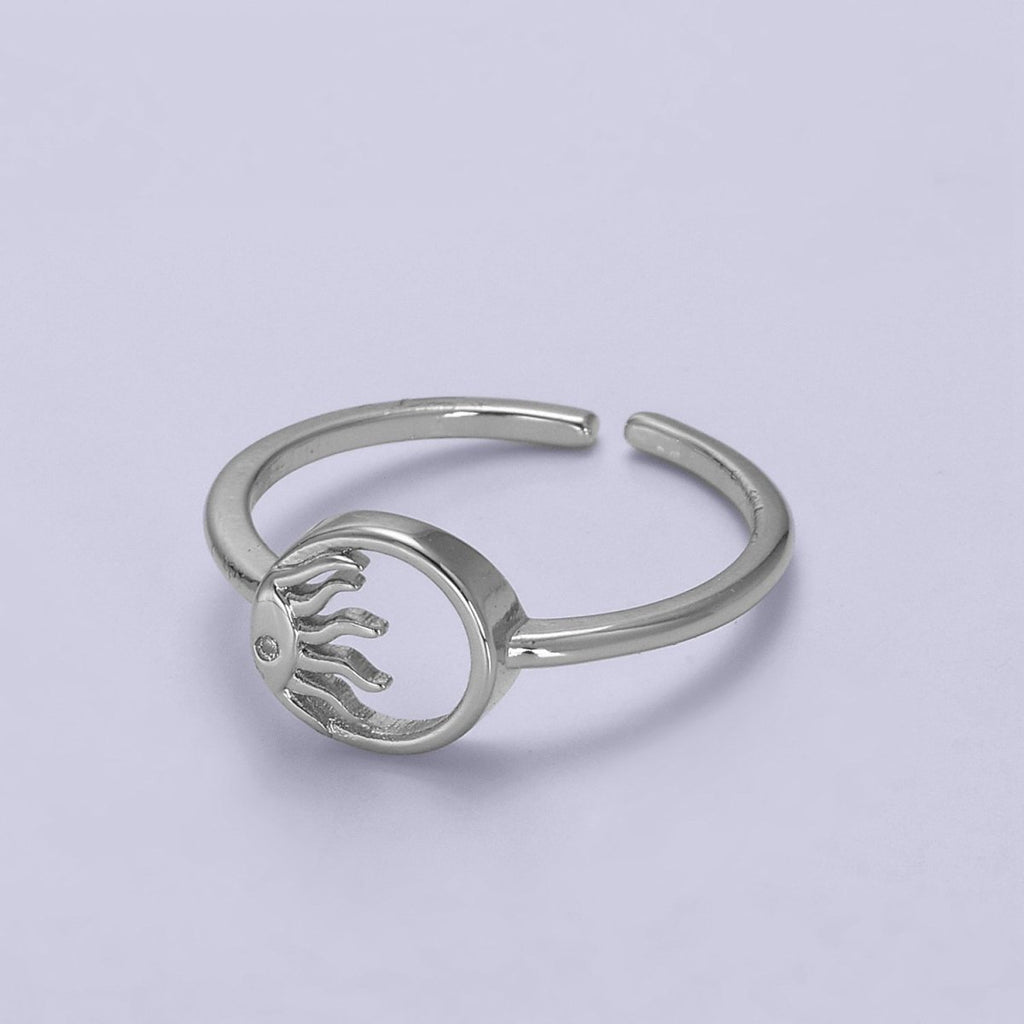 24K Gold Filled Sun Ring, Celestial Astrology Golden Ring with Crystal Cubic Zirconia CZ S-334