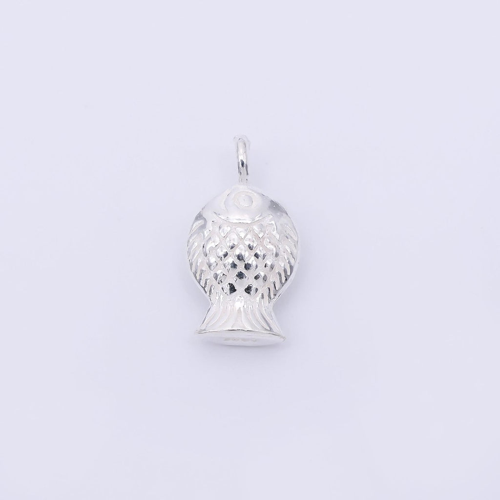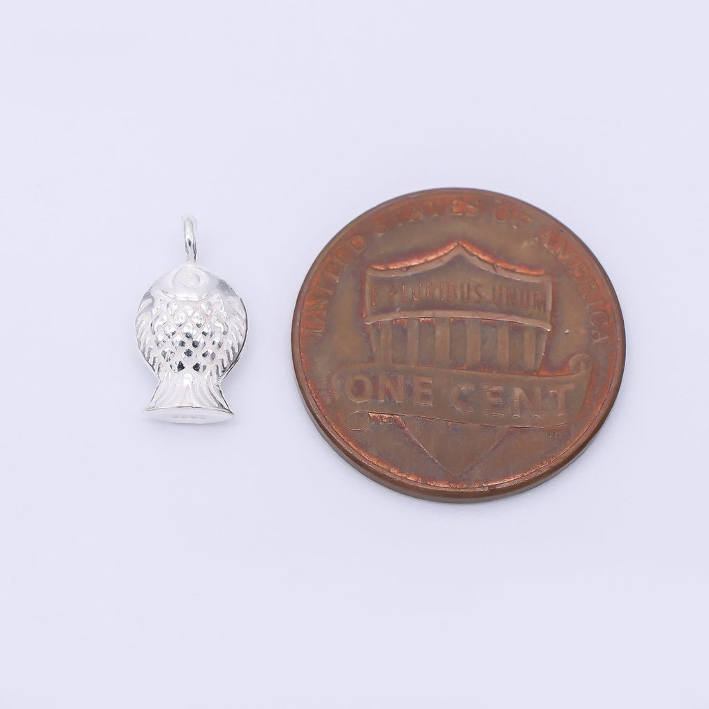 S925 Sterling Silver 12mm Mini Textured Fish Drop Pendant | SL-687