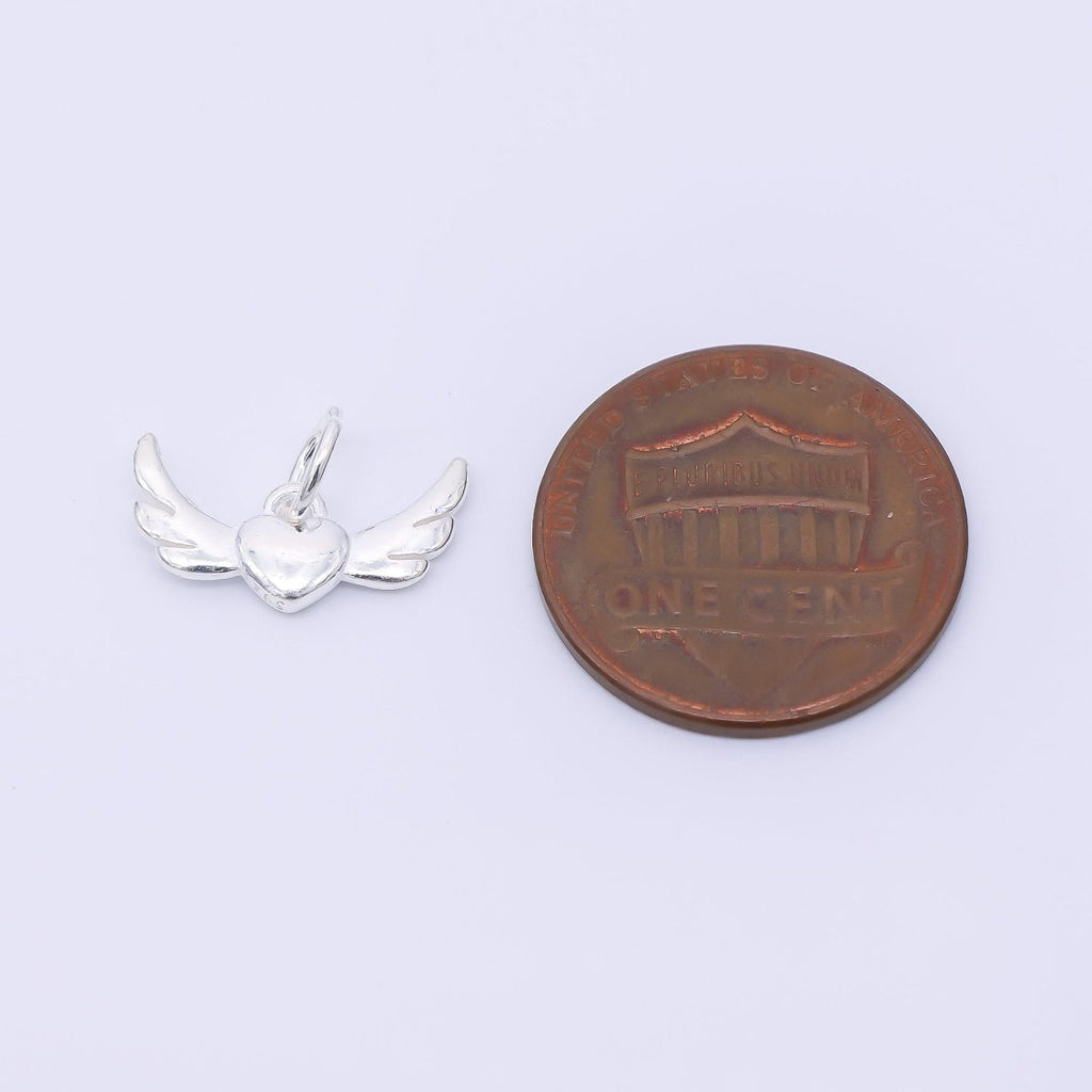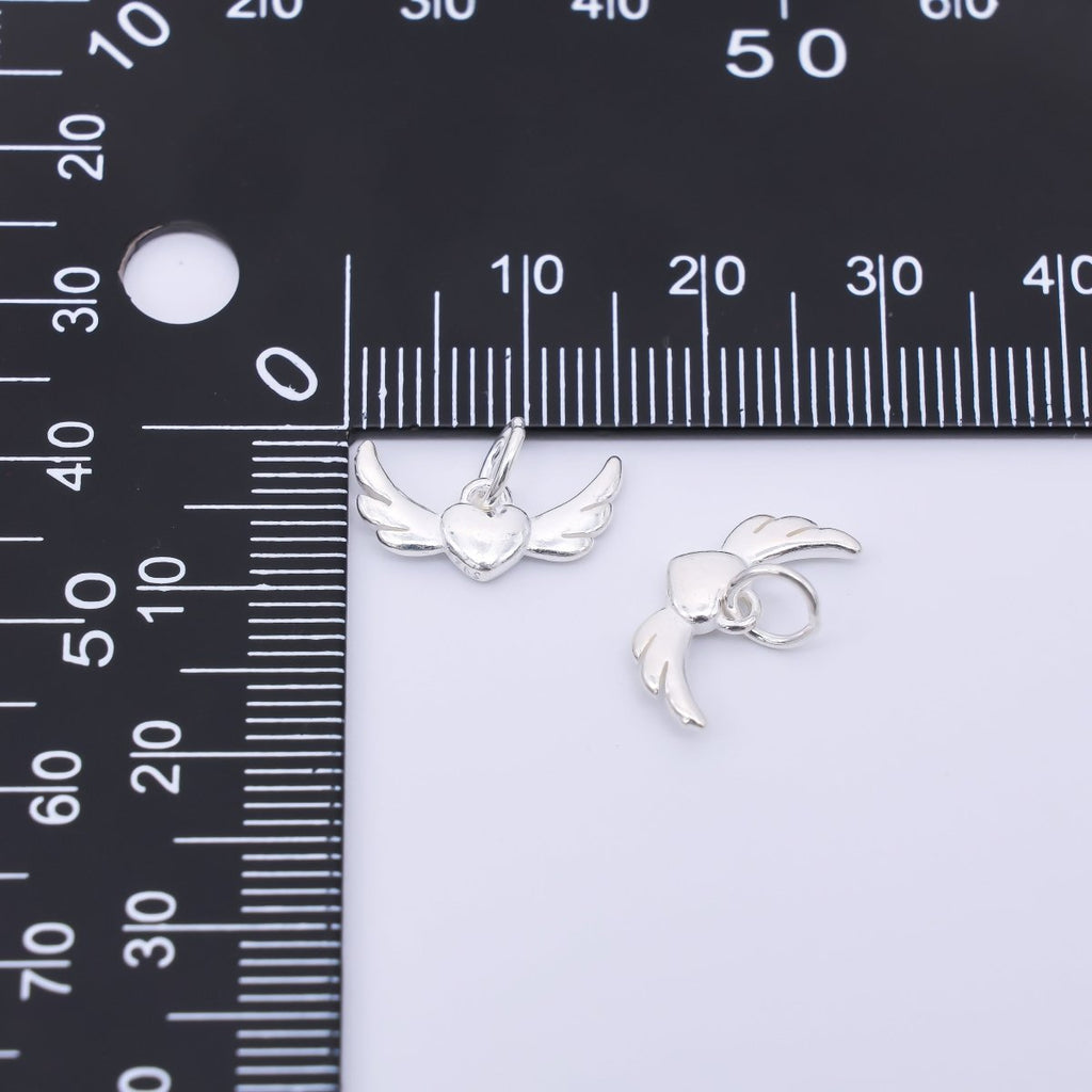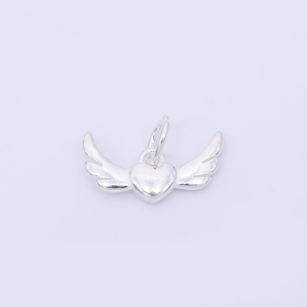 S925 Sterling Silver 8mm Angel Wing Heart Mini Multidimensional Charm | SL-689