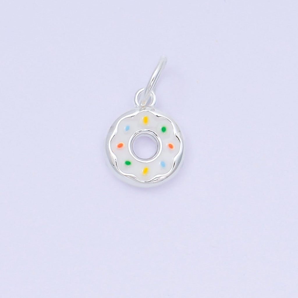 S925 Sterling Silver 10.5mm Multicolor Enamel Sprinkle Donut Mini Charm | SL-680