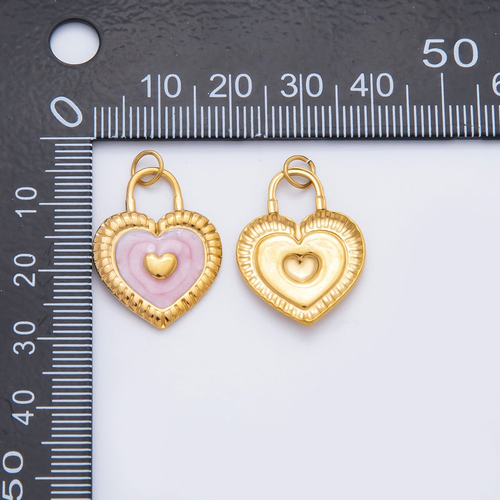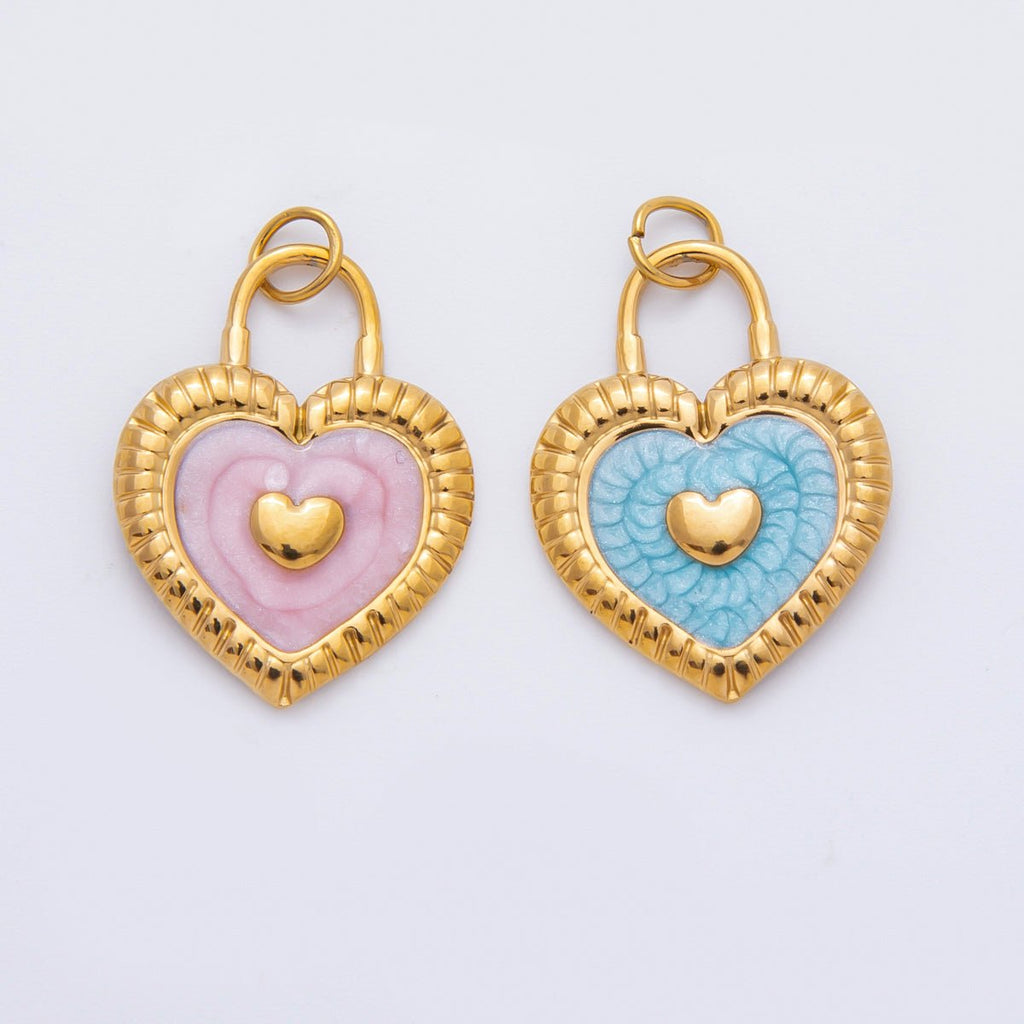 Stainless Steel 27mm Pink, Blue Enamel Ribbed Heart Padlock Charm | C316