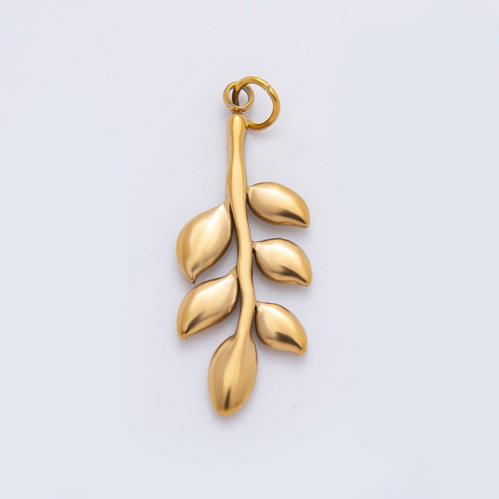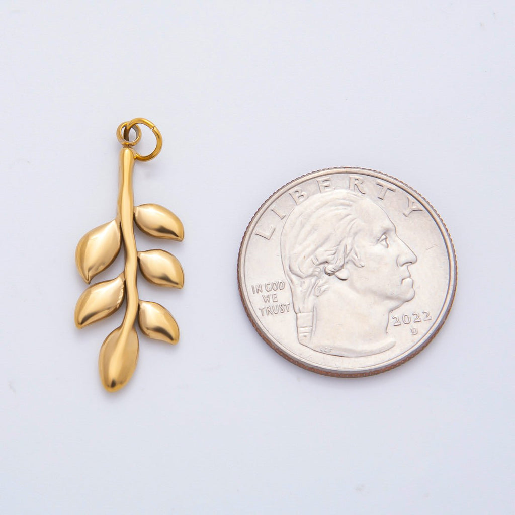 Stainless Steel 35mm Olive Branch Foliage Leaf Plant Minimalist Charm | C-111