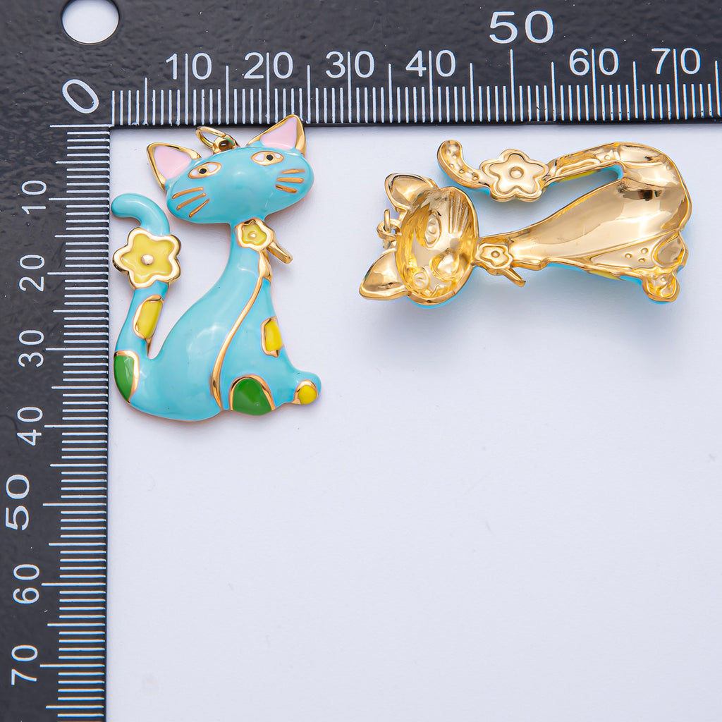 Stainless Steel 40mm Blue, White, Black, Pink Enamel Cat Kitten Pet Statement Charm | J816 J840