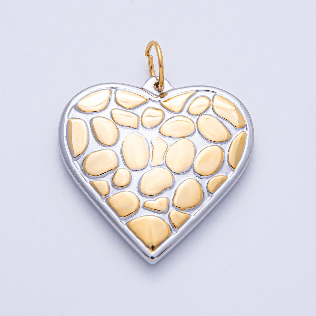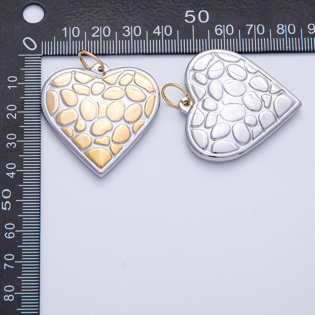 Stainless Steel 40mm Mixed Metal Textured Heart Charm | J934