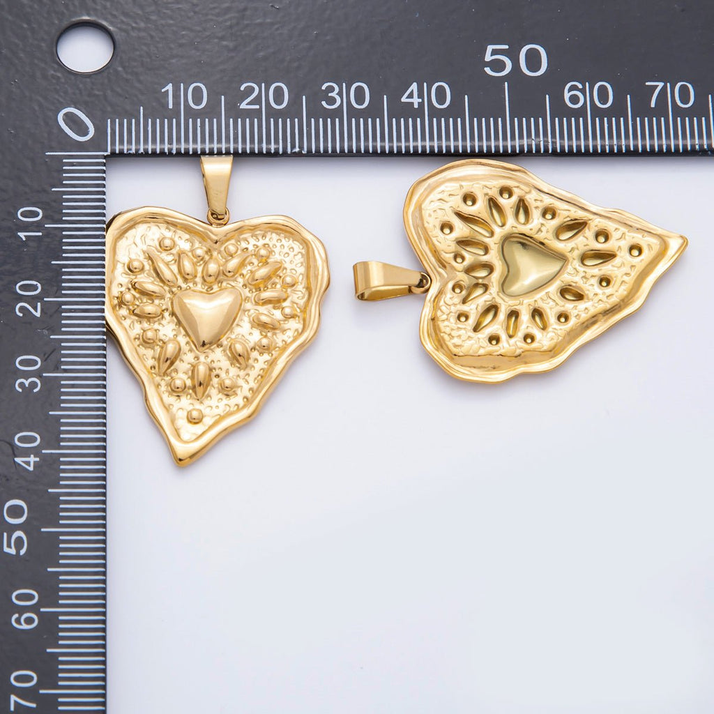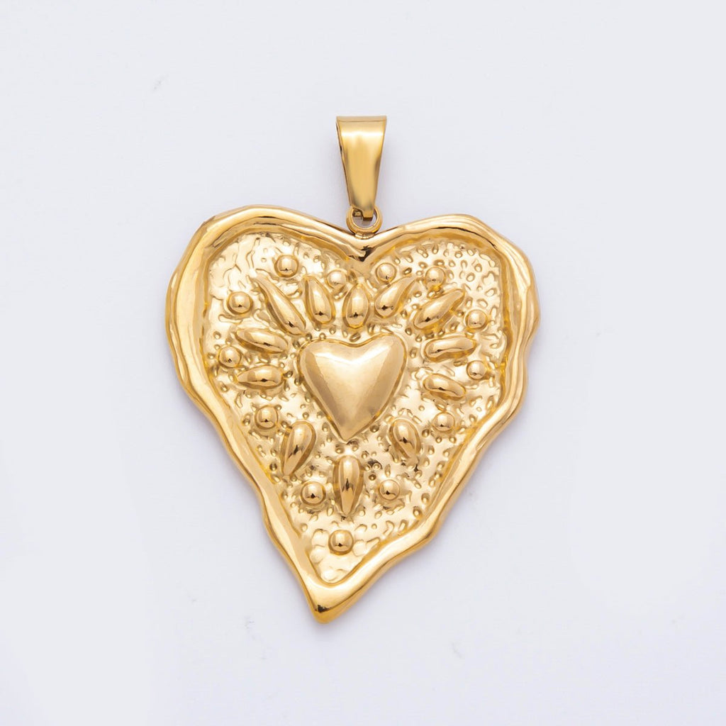 Stainless Steel 41.5mm Sunburst Textured Molten Heart Pendant | P-795