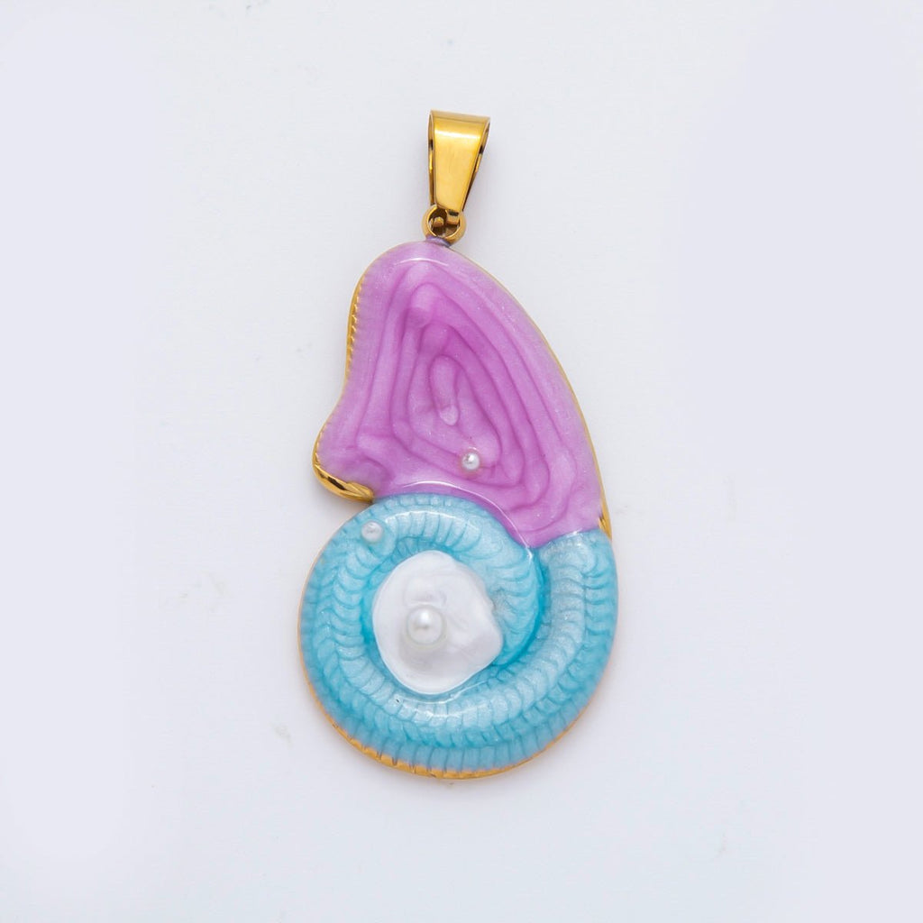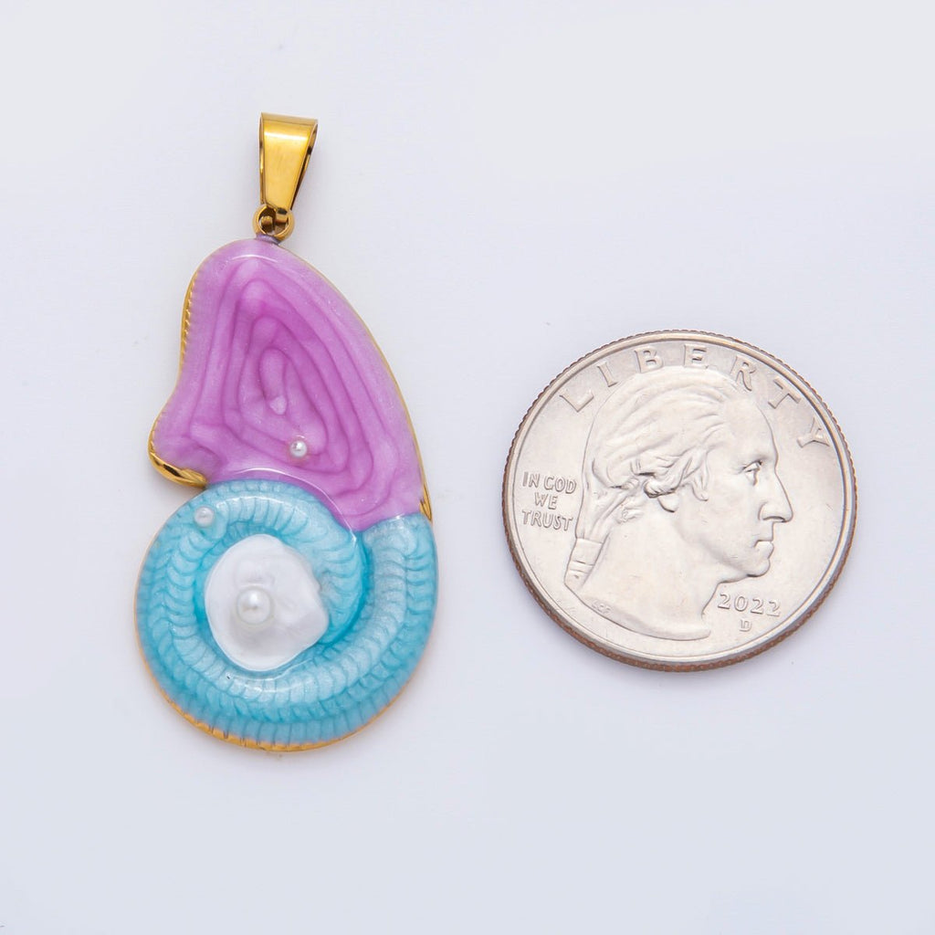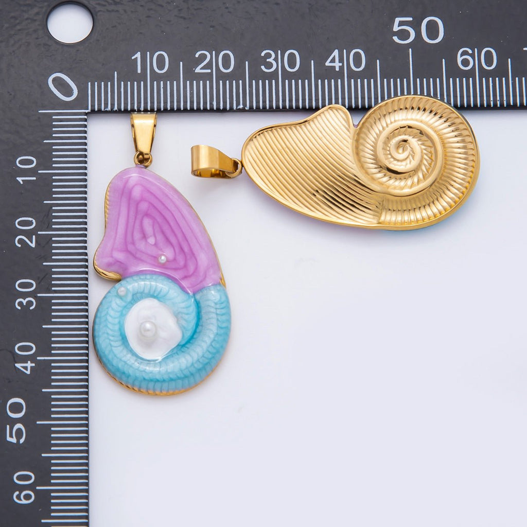 Stainless Steel 45mm Shell Pearl Nautilus Sundial Sea Shell Pendant | J910