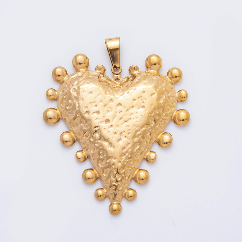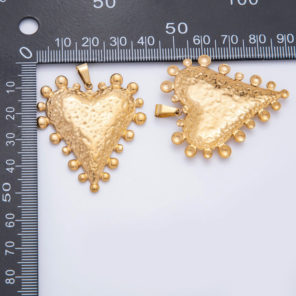 Stainless Steel 49mm Chunky Hammered Heart Beaded Pendant | P-794
