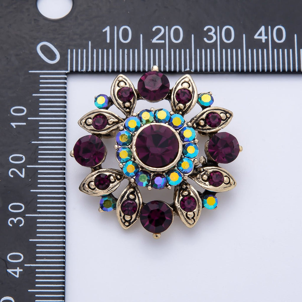 Vintage Gold 33.2mm x 31.5mm Purple Rhinestone Geometric Pin Brooch | BH-077