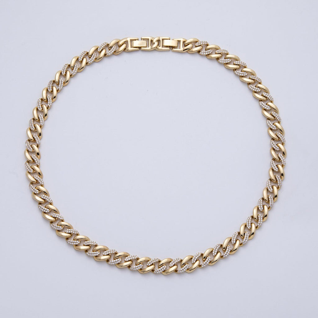 14K Gold Filled 10mm Clear Micro Paved CZ Curb Chain 19.5 Inch Adjustable Necklace | WA-4096
